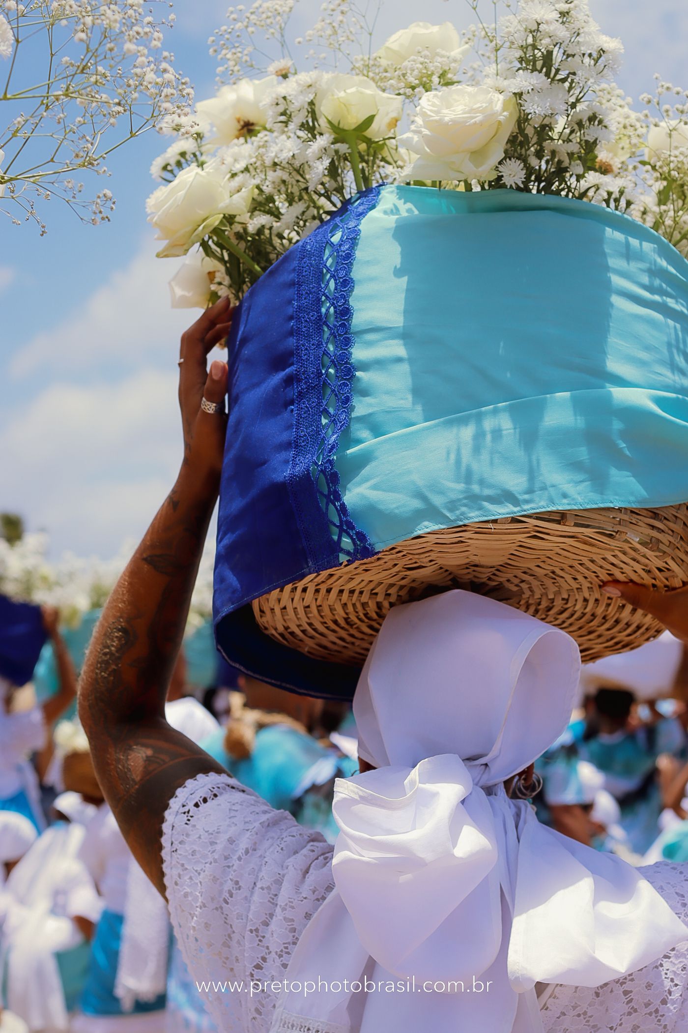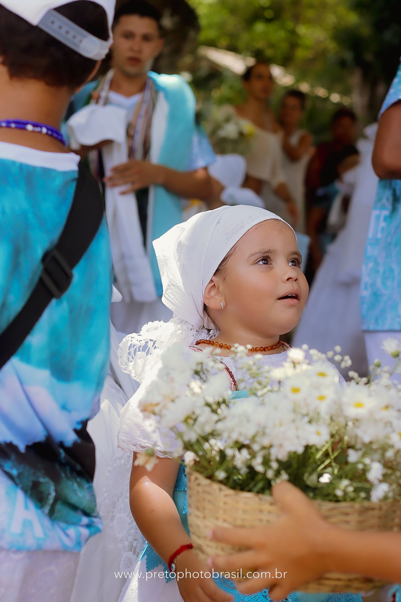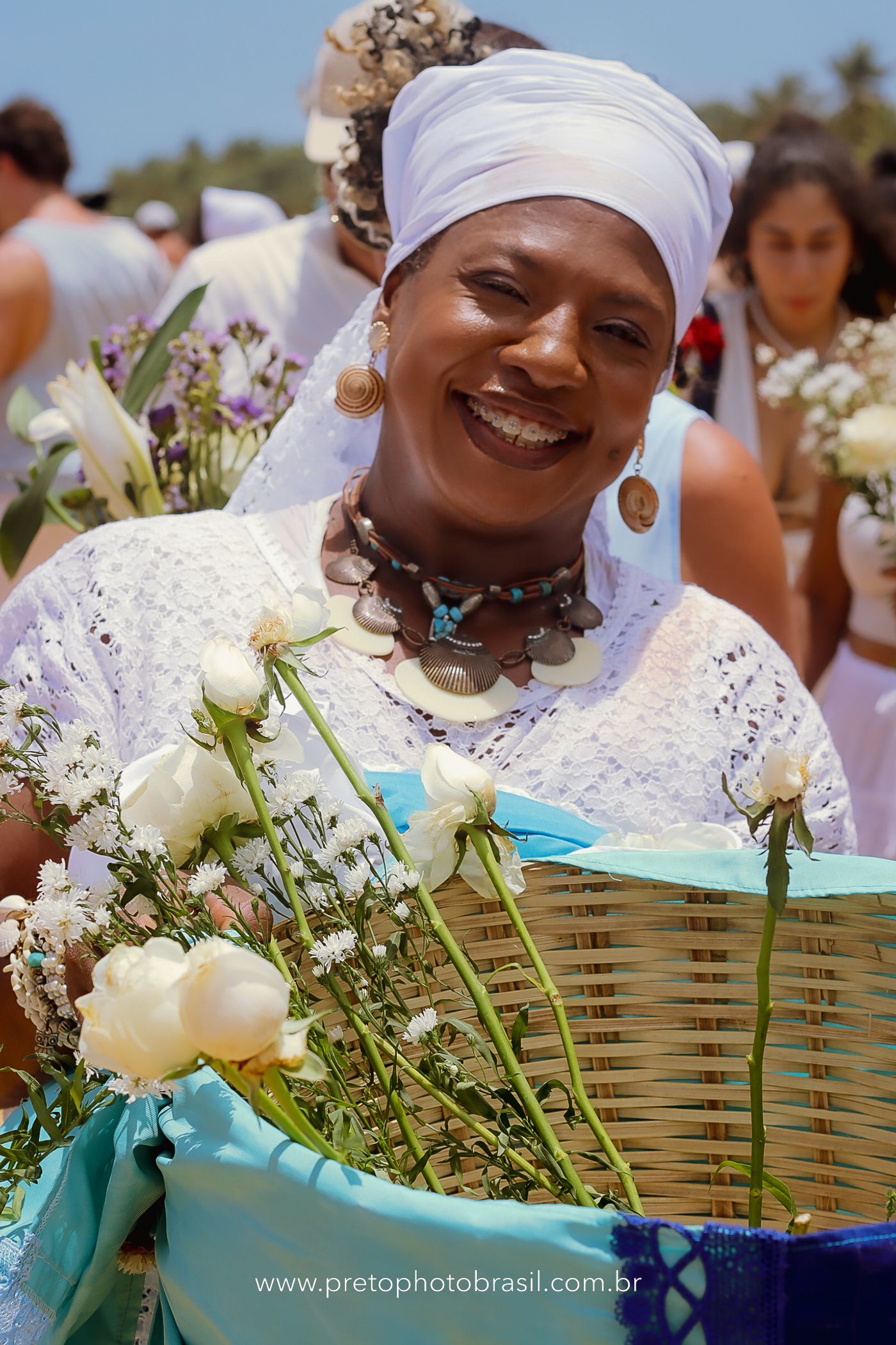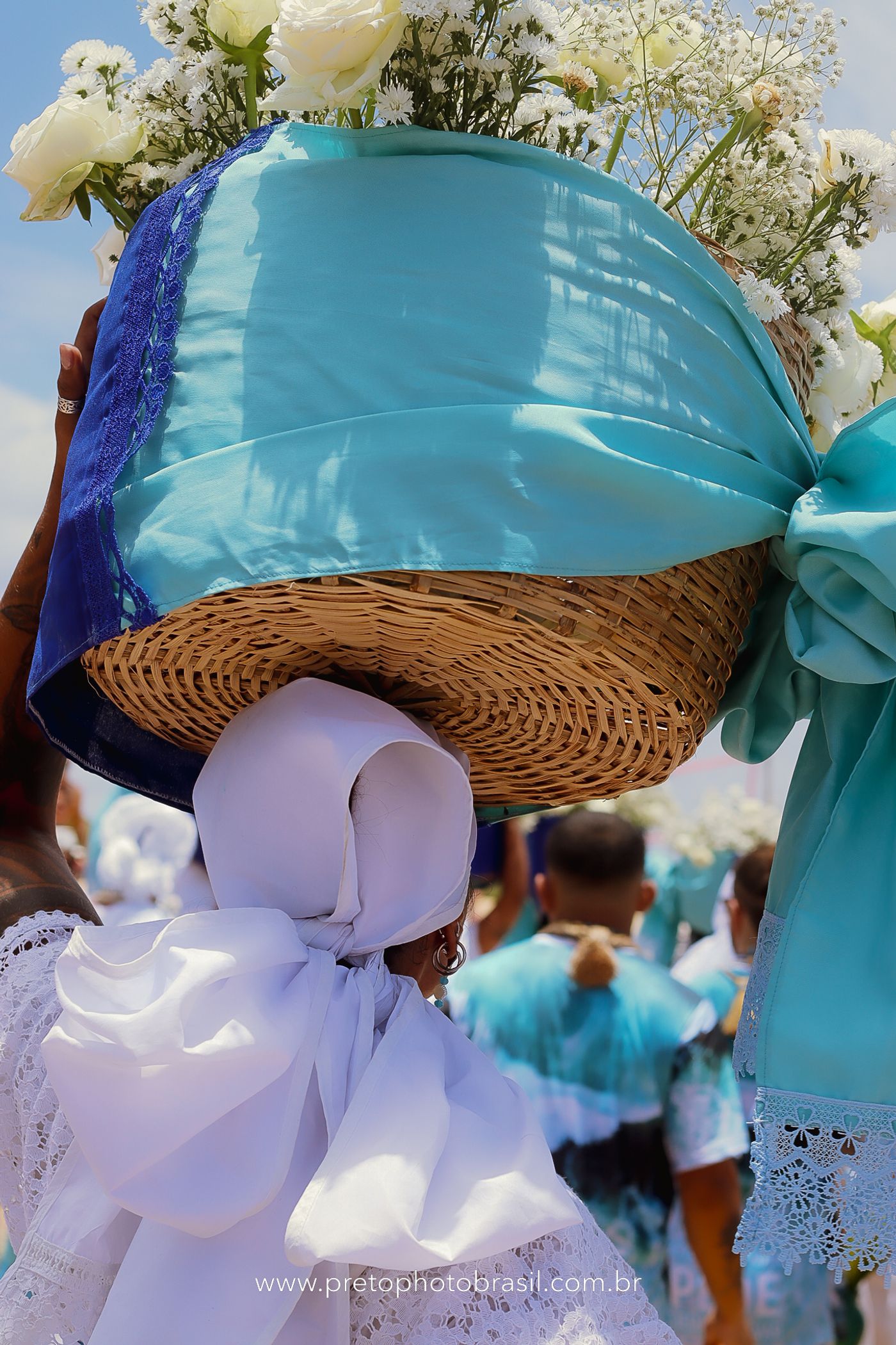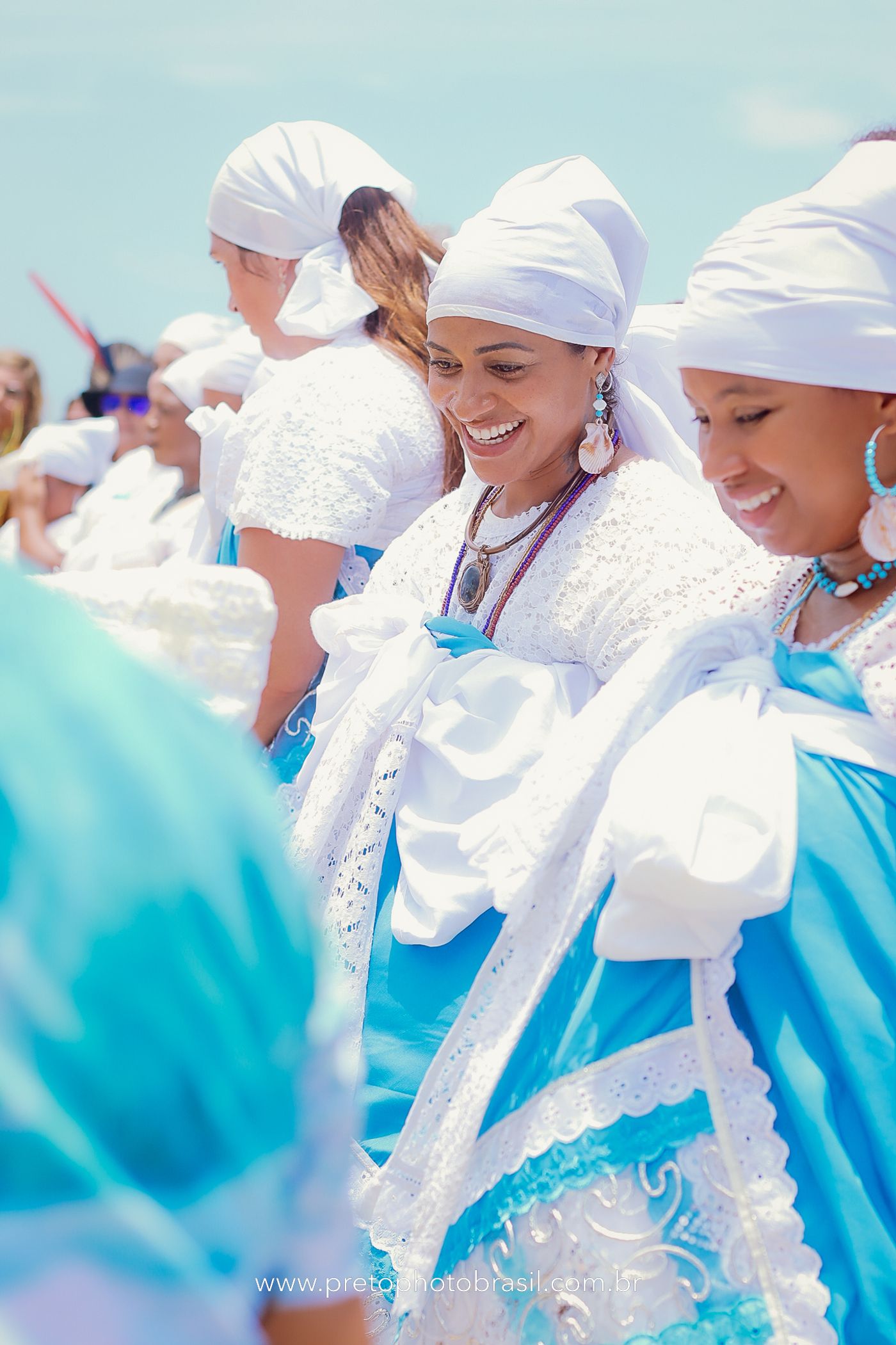 Descrição: Hoje, Trancoso foi tomada por um caminhar antigo e vivo. As baianas saíram em cortejo, com passos firmes e delicados, levando nos braços e sobre a cabeça cestos de flores brancas e azuis — oferendas de amor, fé e gratidão. O caminho até a praia não foi apenas físico: foi ritual. O terreiro do Pai Roni conduziu a celebração com respeito e força ancestral. Entre cantos, silêncios e sorrisos, a multidão se formou naturalmente — gente de todo canto, unida por um mesmo gesto de entrega. Havia muita gente, mas não havia pressa. Havia fé. Havia alegria. Na chegada ao mar, as flores encontraram o destino certo. Foram entregues às águas como quem devolve algo sagrado à origem. Iemanjá recebeu — no azul do céu, no branco das roupas, no brilho tranquilo dos olhos de quem participou. Foi um dia de corpo presente e espírito aberto. Uma festa que não se assiste: se atravessa. E eu tive a honra de registrar, em imagens, esse encontro entre tradição, devoção e vida pulsando junto.