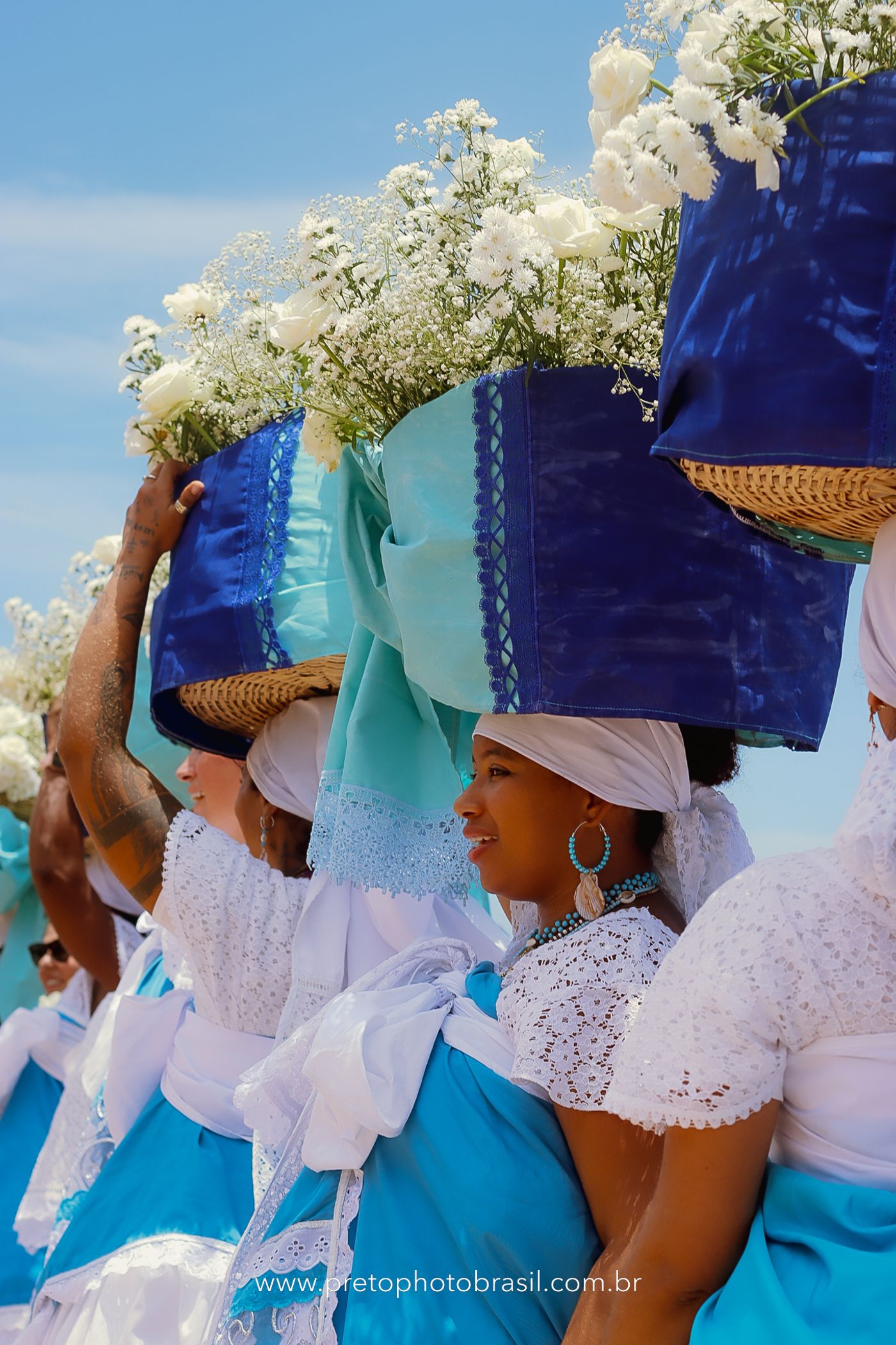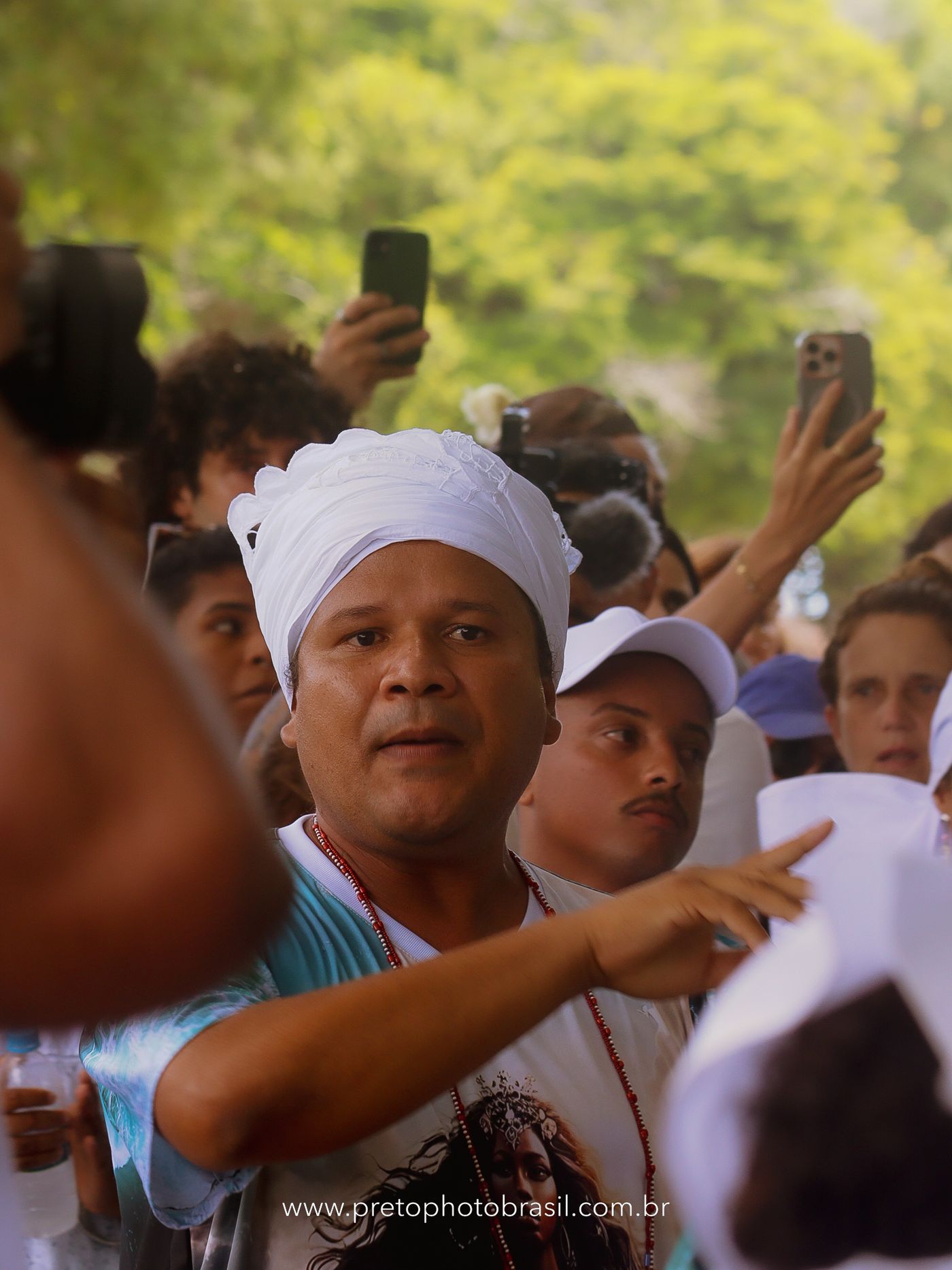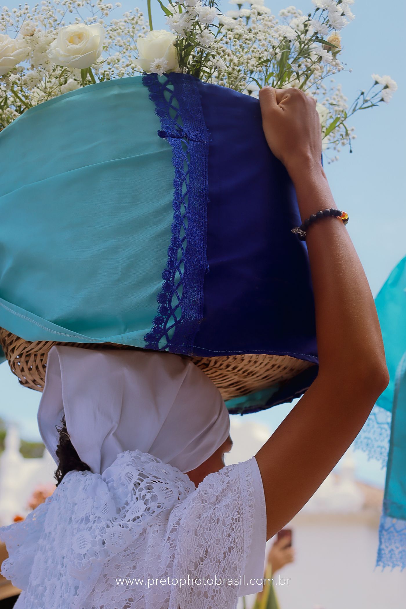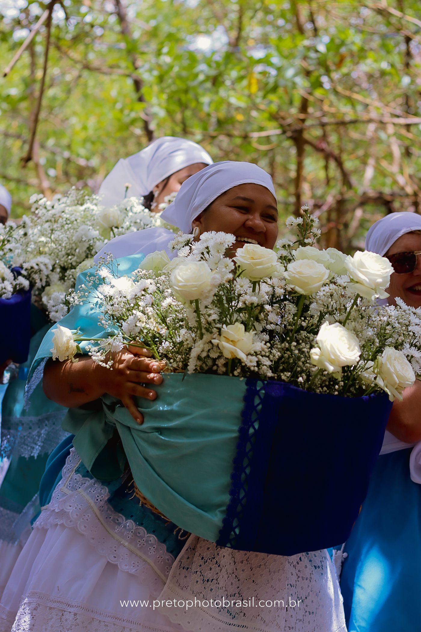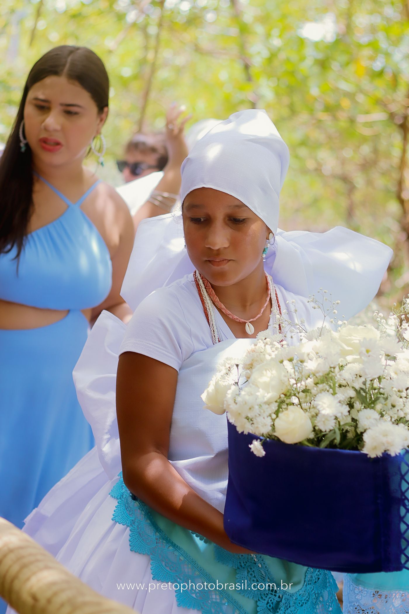 Descrição: Hoje, Trancoso foi tomada por um caminhar antigo e vivo. As baianas saíram em cortejo, com passos firmes e delicados, levando nos braços e sobre a cabeça cestos de flores brancas e azuis — oferendas de amor, fé e gratidão. O caminho até a praia não foi apenas físico: foi ritual. O terreiro do Pai Roni conduziu a celebração com respeito e força ancestral. Entre cantos, silêncios e sorrisos, a multidão se formou naturalmente — gente de todo canto, unida por um mesmo gesto de entrega. Havia muita gente, mas não havia pressa. Havia fé. Havia alegria. Na chegada ao mar, as flores encontraram o destino certo. Foram entregues às águas como quem devolve algo sagrado à origem. Iemanjá recebeu — no azul do céu, no branco das roupas, no brilho tranquilo dos olhos de quem participou. Foi um dia de corpo presente e espírito aberto. Uma festa que não se assiste: se atravessa. E eu tive a honra de registrar, em imagens, esse encontro entre tradição, devoção e vida pulsando junto.