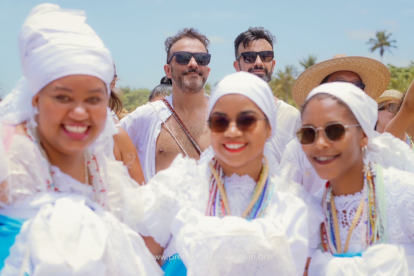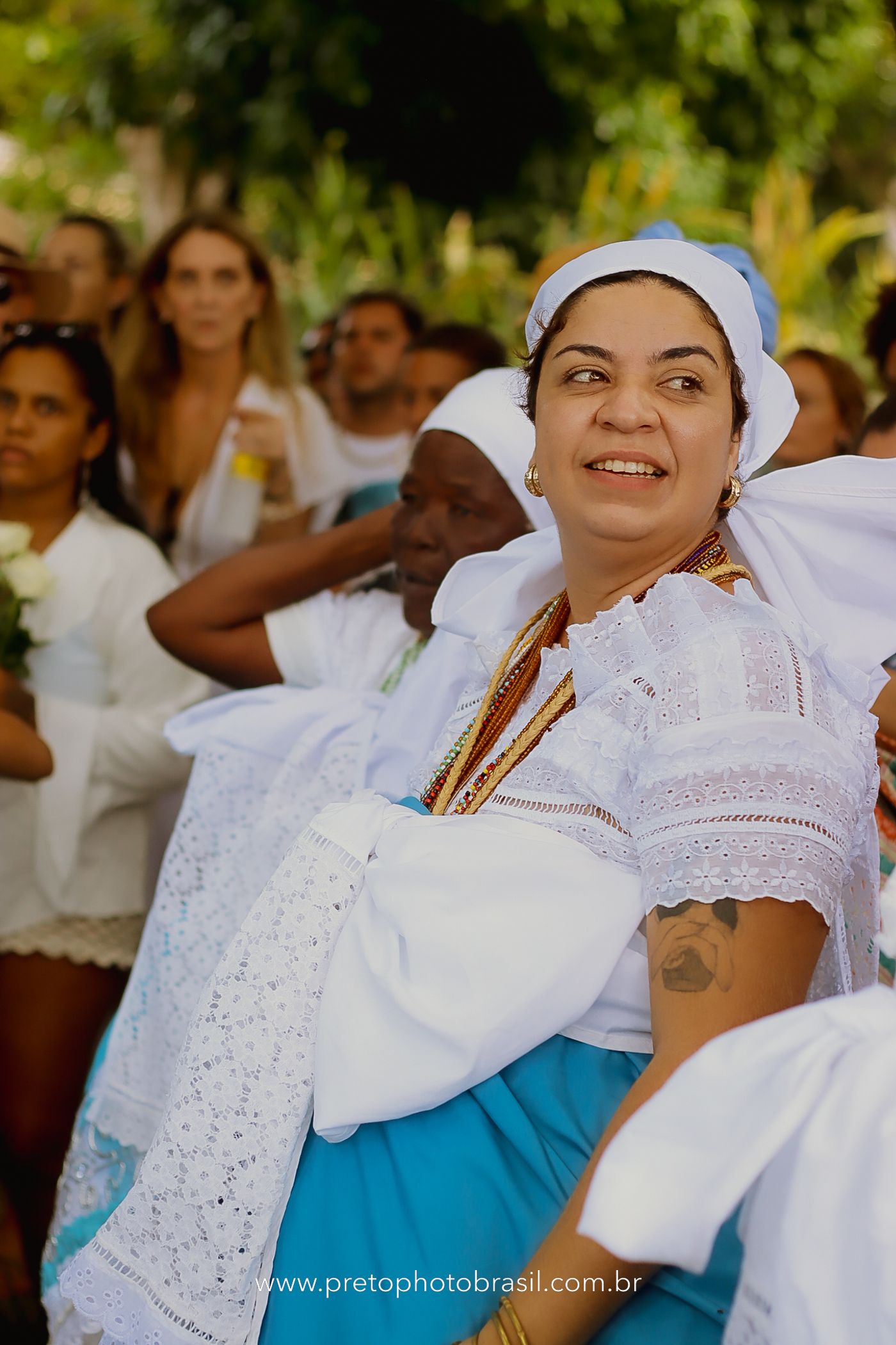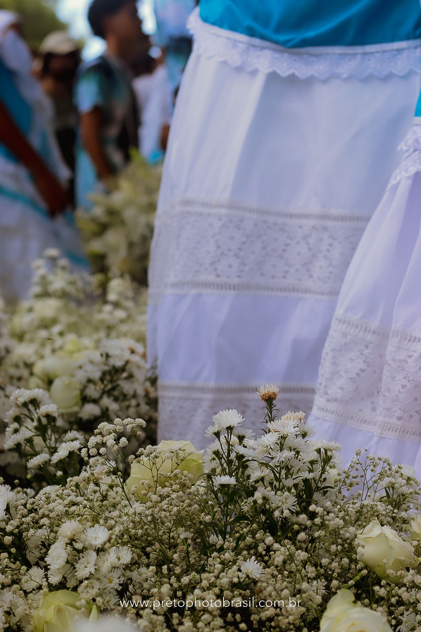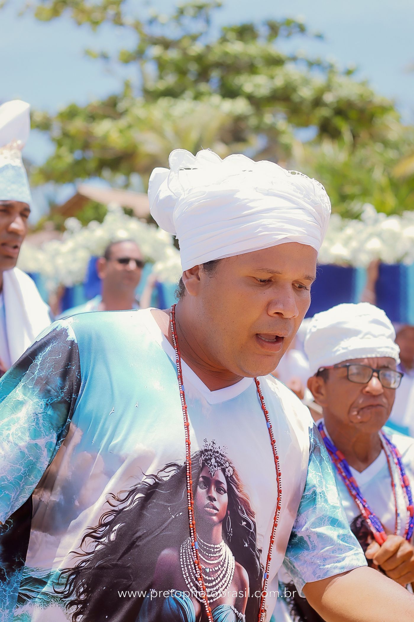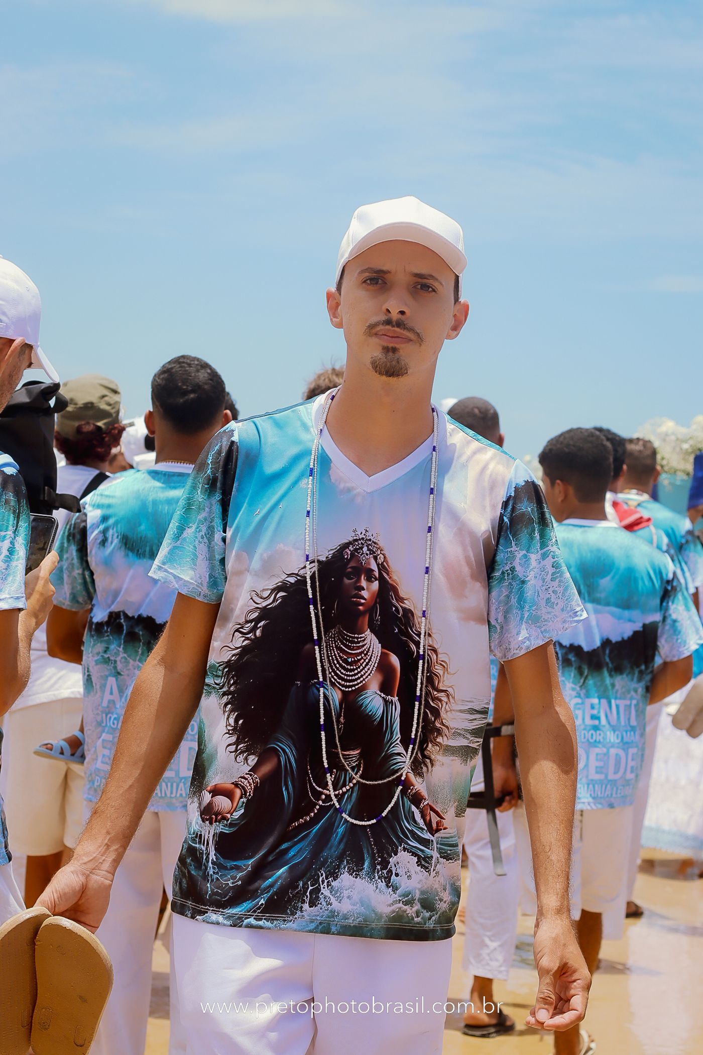 Descrição: Hoje, Trancoso foi tomada por um caminhar antigo e vivo. As baianas saíram em cortejo, com passos firmes e delicados, levando nos braços e sobre a cabeça cestos de flores brancas e azuis — oferendas de amor, fé e gratidão. O caminho até a praia não foi apenas físico: foi ritual. O terreiro do Pai Roni conduziu a celebração com respeito e força ancestral. Entre cantos, silêncios e sorrisos, a multidão se formou naturalmente — gente de todo canto, unida por um mesmo gesto de entrega. Havia muita gente, mas não havia pressa. Havia fé. Havia alegria. Na chegada ao mar, as flores encontraram o destino certo. Foram entregues às águas como quem devolve algo sagrado à origem. Iemanjá recebeu — no azul do céu, no branco das roupas, no brilho tranquilo dos olhos de quem participou. Foi um dia de corpo presente e espírito aberto. Uma festa que não se assiste: se atravessa. E eu tive a honra de registrar, em imagens, esse encontro entre tradição, devoção e vida pulsando junto.