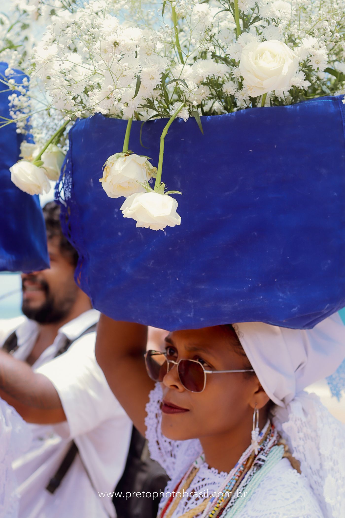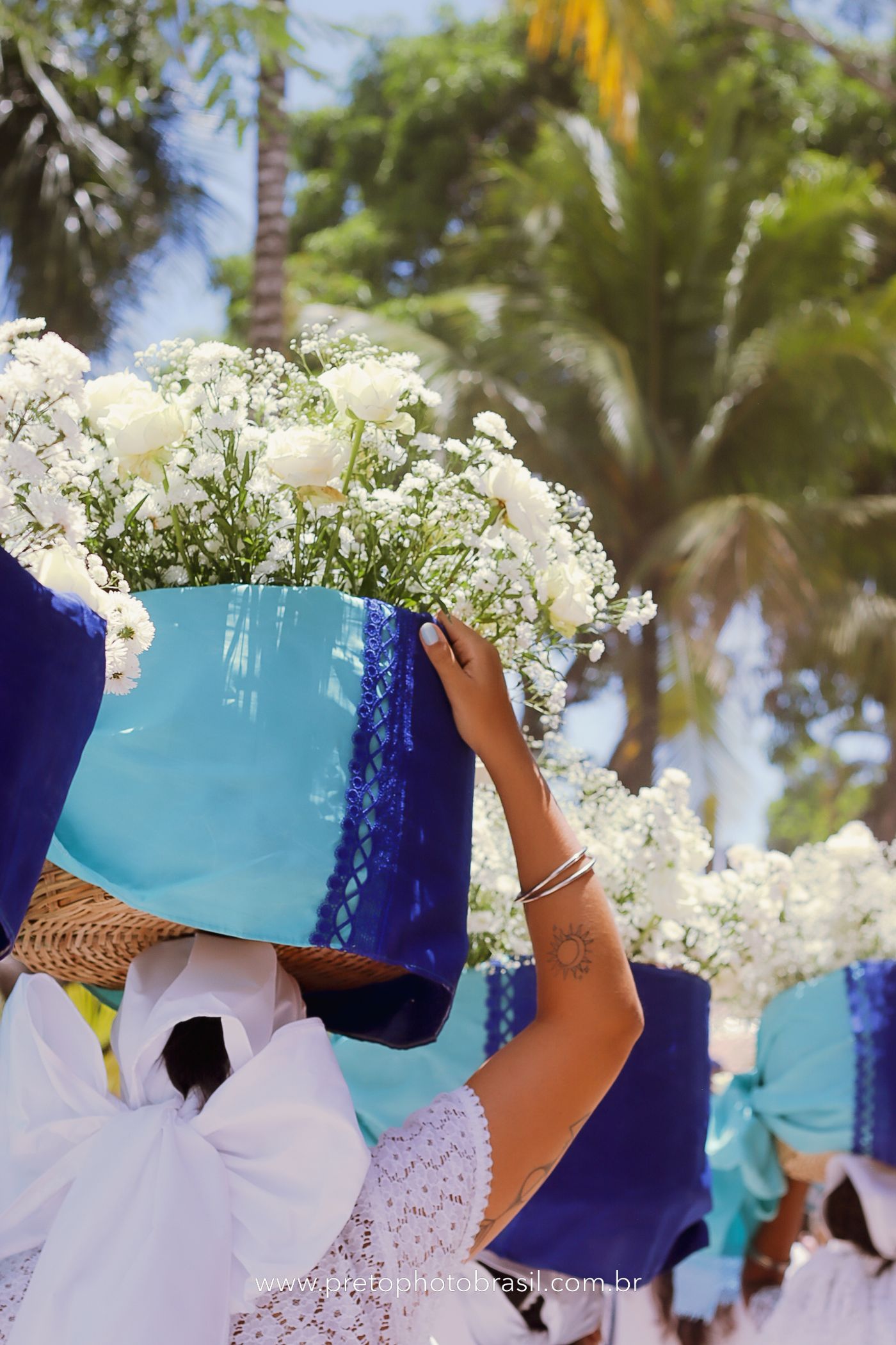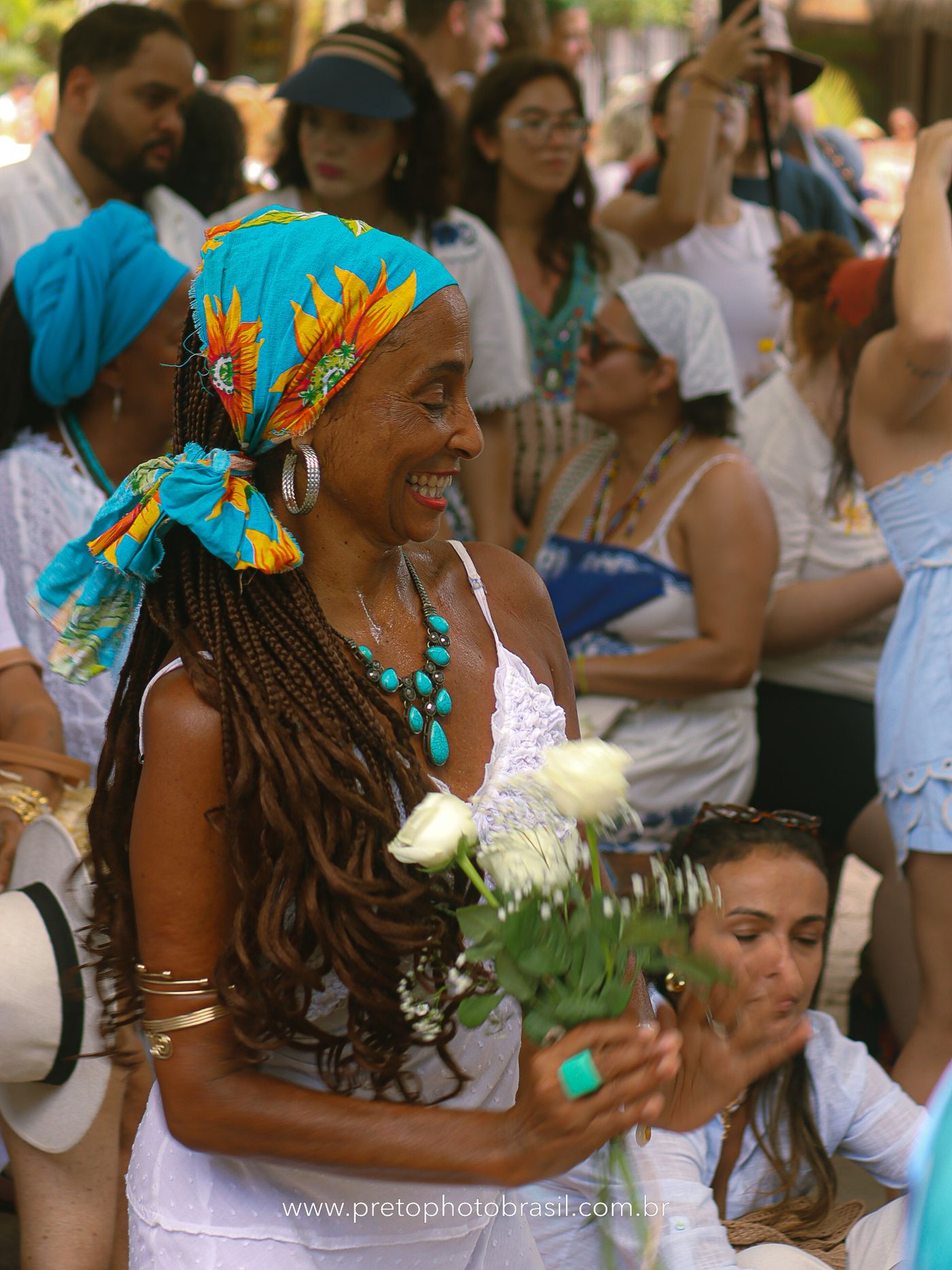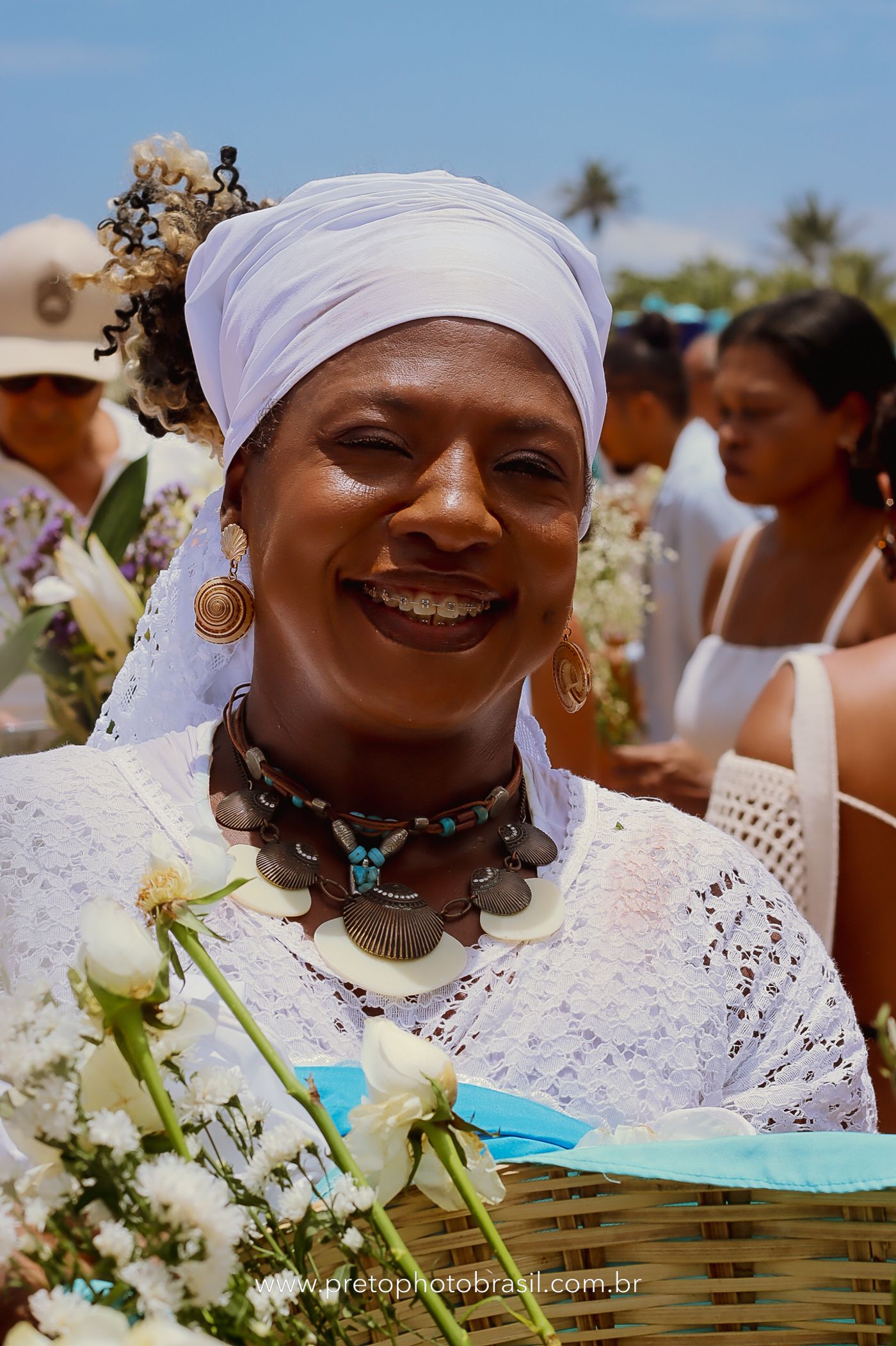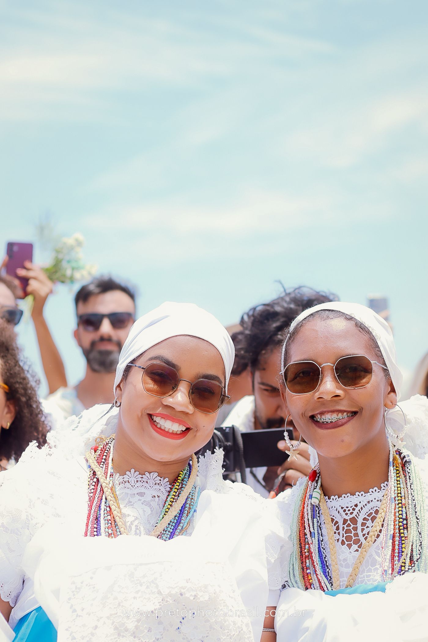 Descrição: Hoje, Trancoso foi tomada por um caminhar antigo e vivo. As baianas saíram em cortejo, com passos firmes e delicados, levando nos braços e sobre a cabeça cestos de flores brancas e azuis — oferendas de amor, fé e gratidão. O caminho até a praia não foi apenas físico: foi ritual. O terreiro do Pai Roni conduziu a celebração com respeito e força ancestral. Entre cantos, silêncios e sorrisos, a multidão se formou naturalmente — gente de todo canto, unida por um mesmo gesto de entrega. Havia muita gente, mas não havia pressa. Havia fé. Havia alegria. Na chegada ao mar, as flores encontraram o destino certo. Foram entregues às águas como quem devolve algo sagrado à origem. Iemanjá recebeu — no azul do céu, no branco das roupas, no brilho tranquilo dos olhos de quem participou. Foi um dia de corpo presente e espírito aberto. Uma festa que não se assiste: se atravessa. E eu tive a honra de registrar, em imagens, esse encontro entre tradição, devoção e vida pulsando junto.