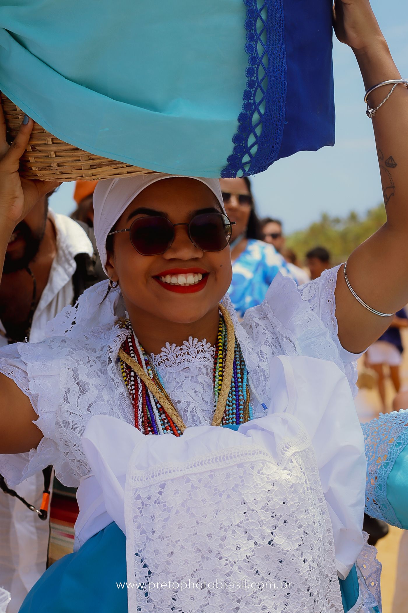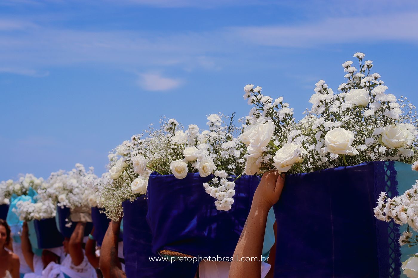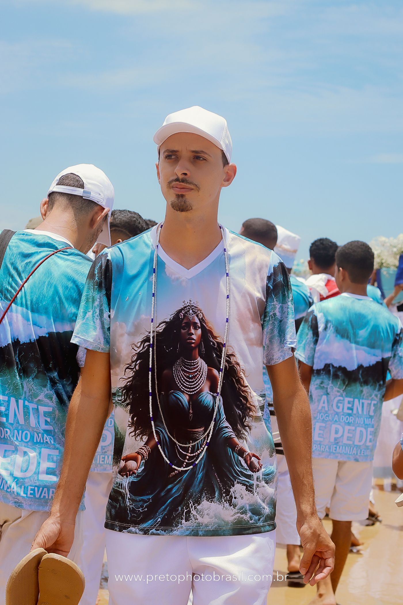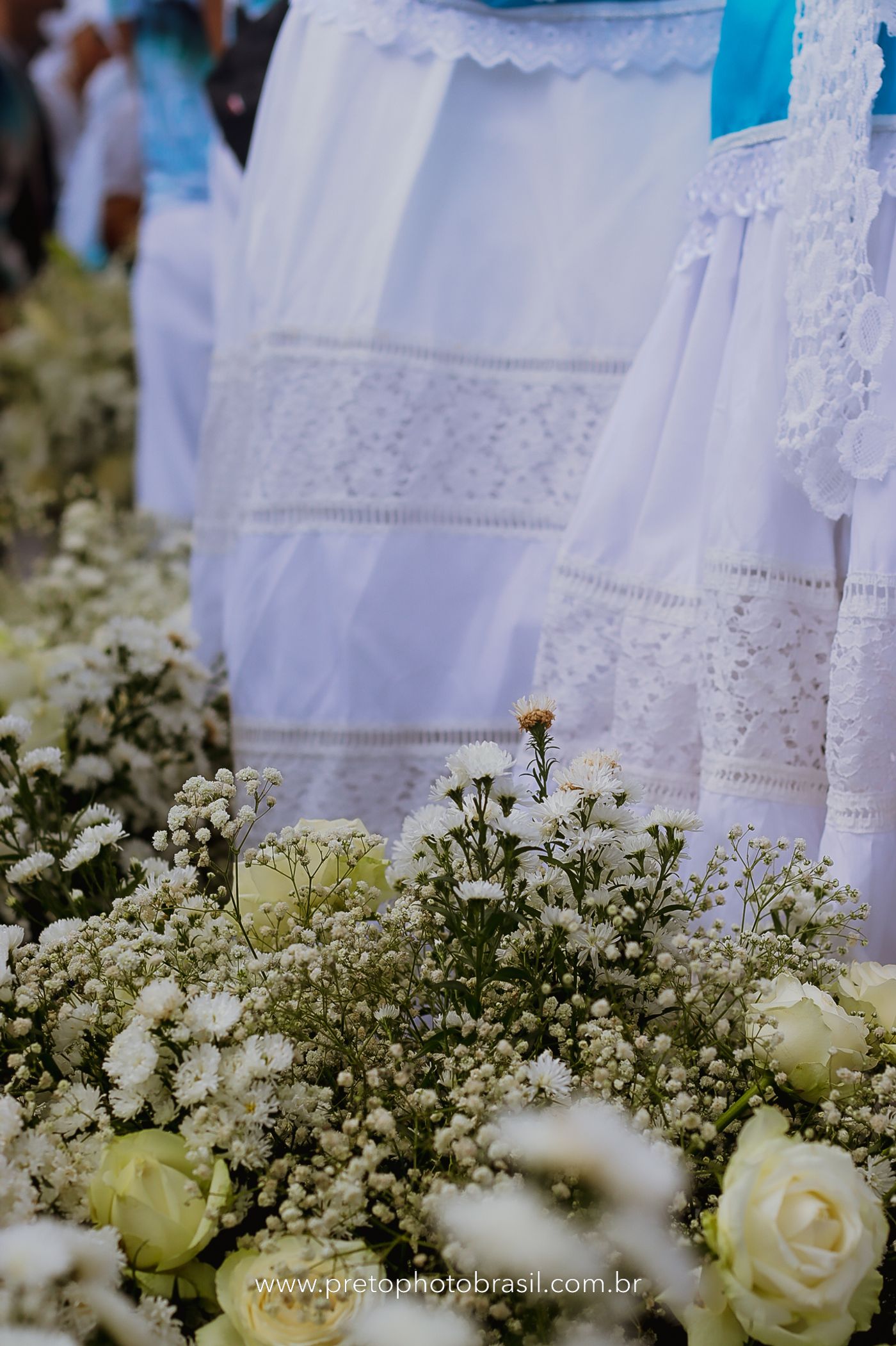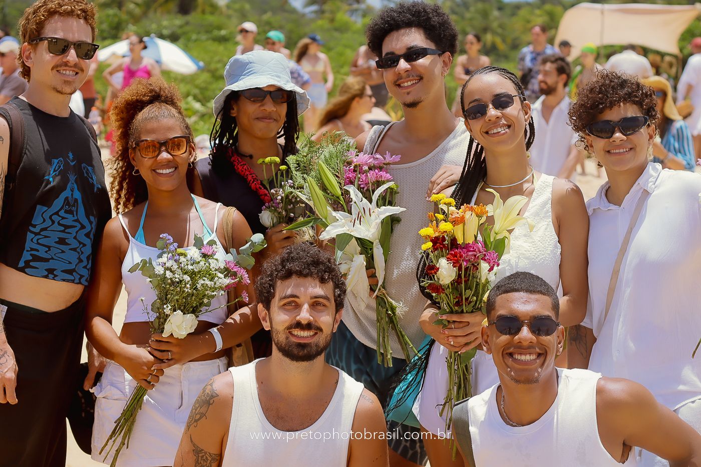 Descrição: Hoje, Trancoso foi tomada por um caminhar antigo e vivo. As baianas saíram em cortejo, com passos firmes e delicados, levando nos braços e sobre a cabeça cestos de flores brancas e azuis — oferendas de amor, fé e gratidão. O caminho até a praia não foi apenas físico: foi ritual. O terreiro do Pai Roni conduziu a celebração com respeito e força ancestral. Entre cantos, silêncios e sorrisos, a multidão se formou naturalmente — gente de todo canto, unida por um mesmo gesto de entrega. Havia muita gente, mas não havia pressa. Havia fé. Havia alegria. Na chegada ao mar, as flores encontraram o destino certo. Foram entregues às águas como quem devolve algo sagrado à origem. Iemanjá recebeu — no azul do céu, no branco das roupas, no brilho tranquilo dos olhos de quem participou. Foi um dia de corpo presente e espírito aberto. Uma festa que não se assiste: se atravessa. E eu tive a honra de registrar, em imagens, esse encontro entre tradição, devoção e vida pulsando junto.