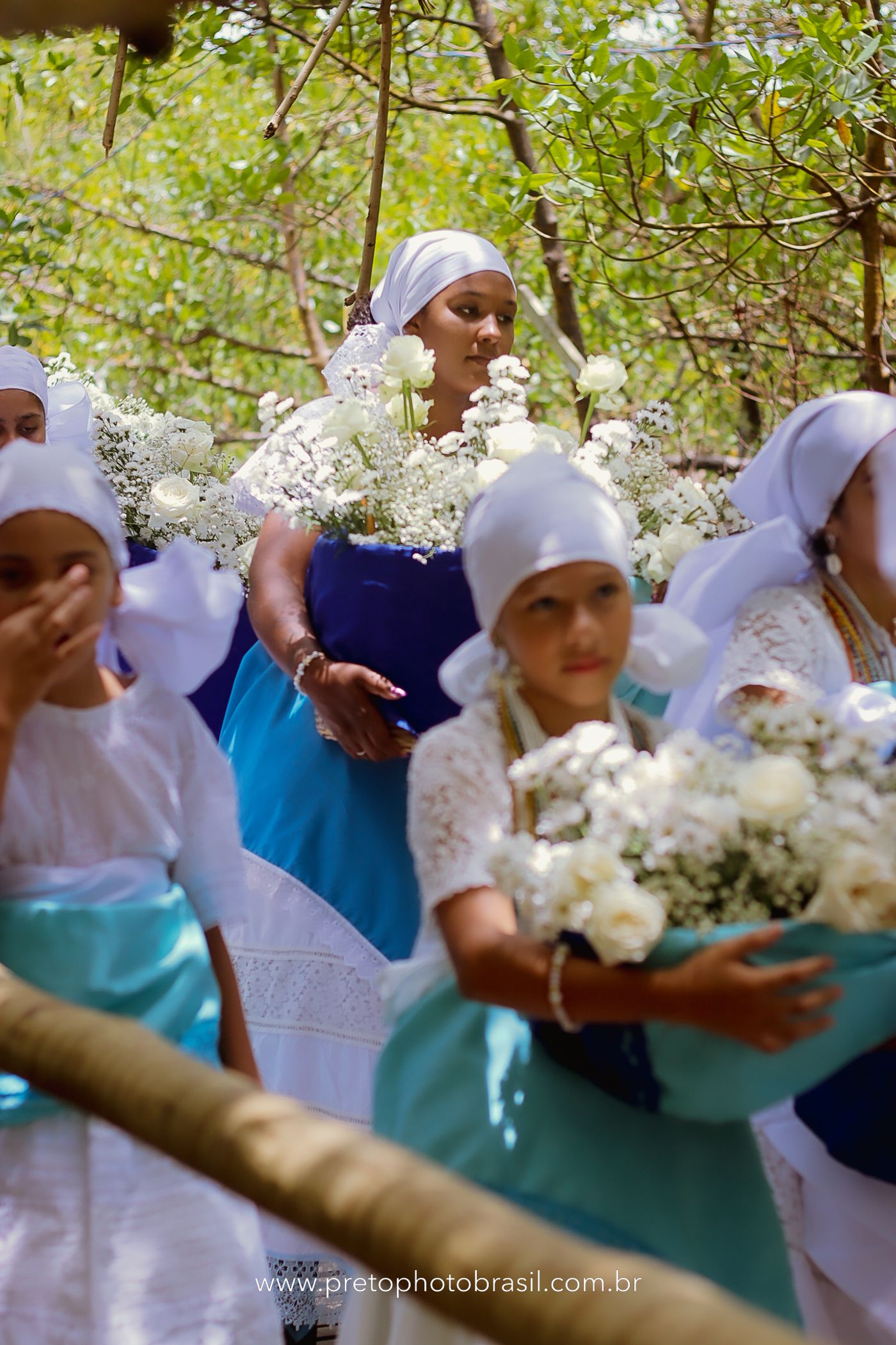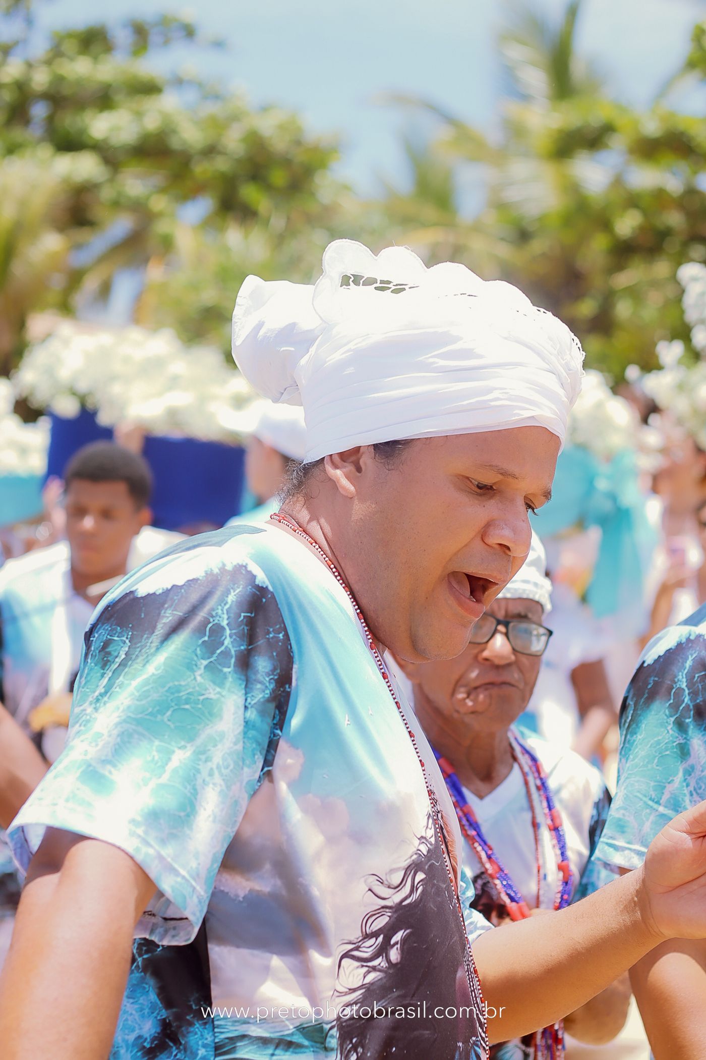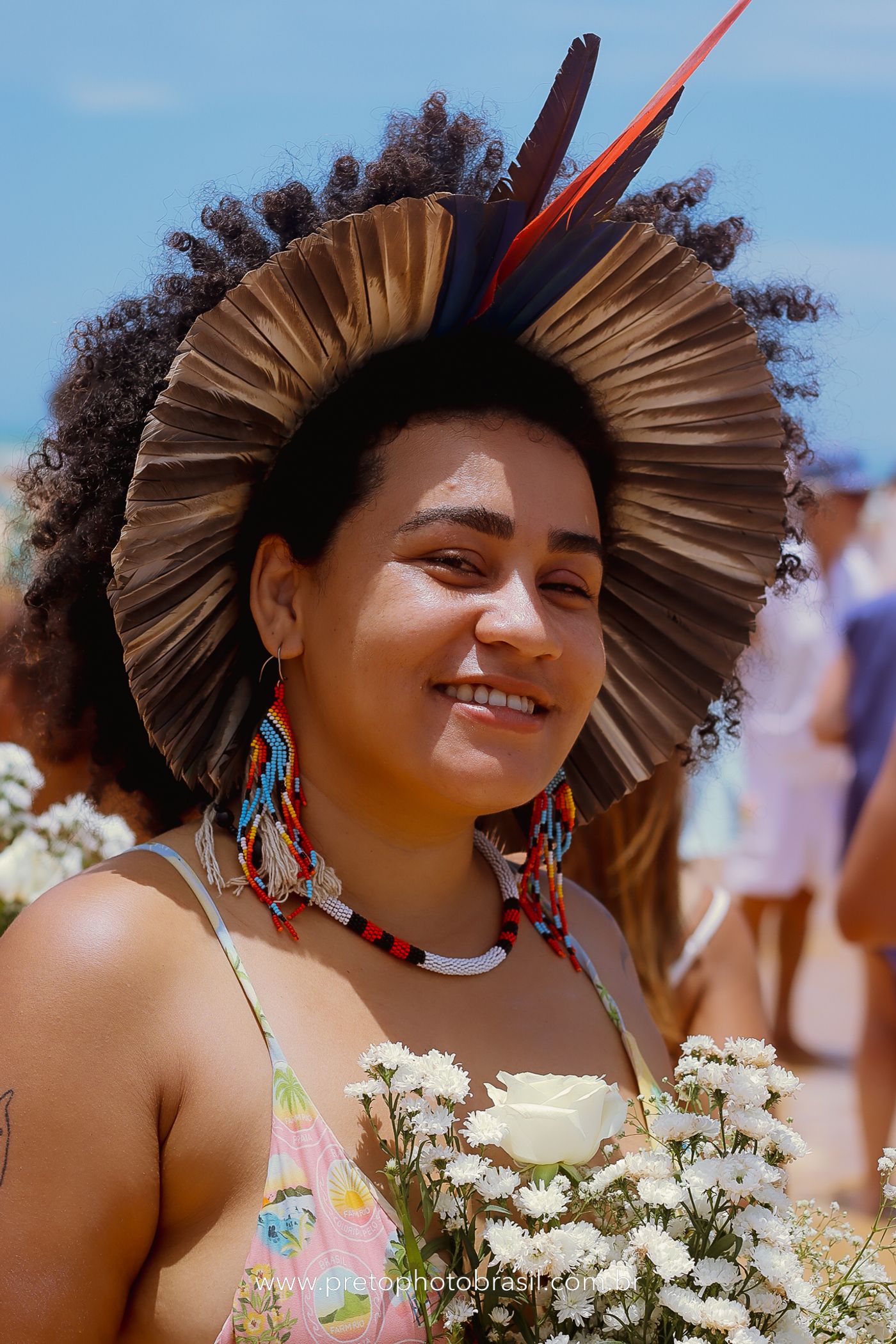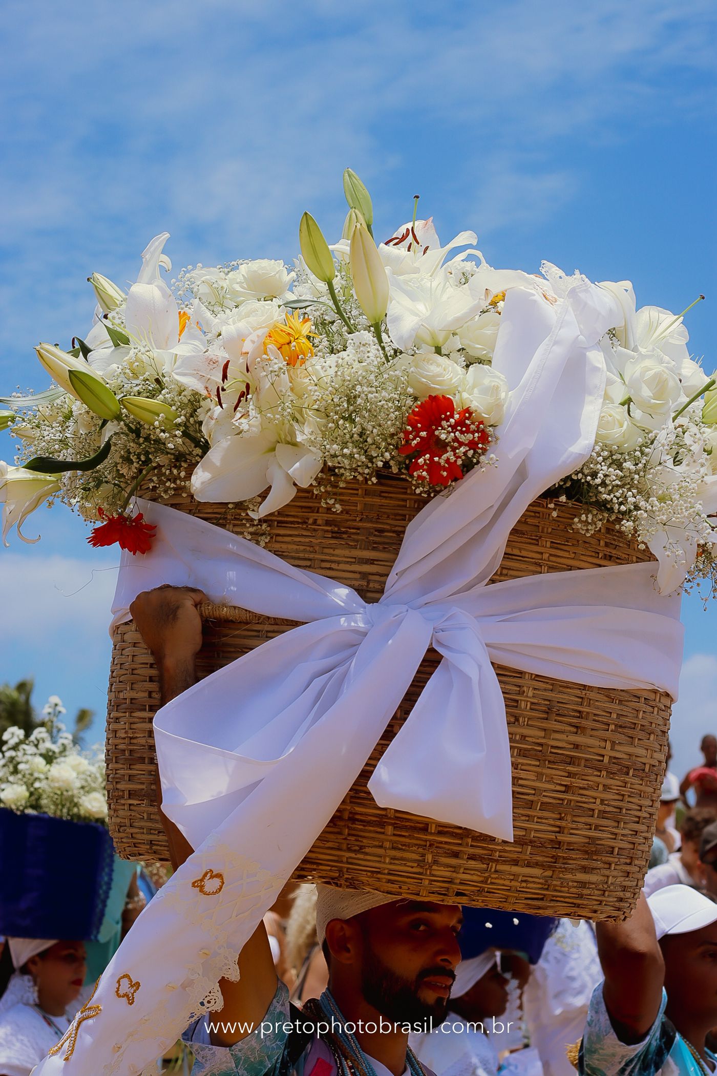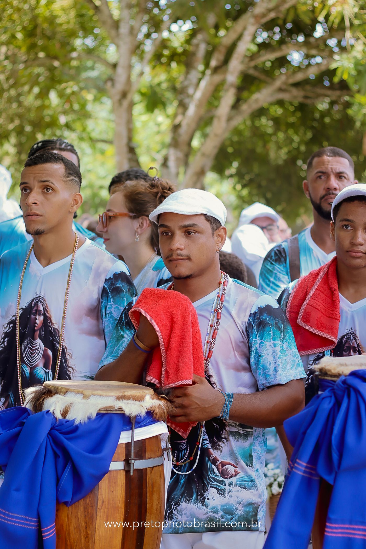 Descrição: Hoje, Trancoso foi tomada por um caminhar antigo e vivo. As baianas saíram em cortejo, com passos firmes e delicados, levando nos braços e sobre a cabeça cestos de flores brancas e azuis — oferendas de amor, fé e gratidão. O caminho até a praia não foi apenas físico: foi ritual. O terreiro do Pai Roni conduziu a celebração com respeito e força ancestral. Entre cantos, silêncios e sorrisos, a multidão se formou naturalmente — gente de todo canto, unida por um mesmo gesto de entrega. Havia muita gente, mas não havia pressa. Havia fé. Havia alegria. Na chegada ao mar, as flores encontraram o destino certo. Foram entregues às águas como quem devolve algo sagrado à origem. Iemanjá recebeu — no azul do céu, no branco das roupas, no brilho tranquilo dos olhos de quem participou. Foi um dia de corpo presente e espírito aberto. Uma festa que não se assiste: se atravessa. E eu tive a honra de registrar, em imagens, esse encontro entre tradição, devoção e vida pulsando junto.