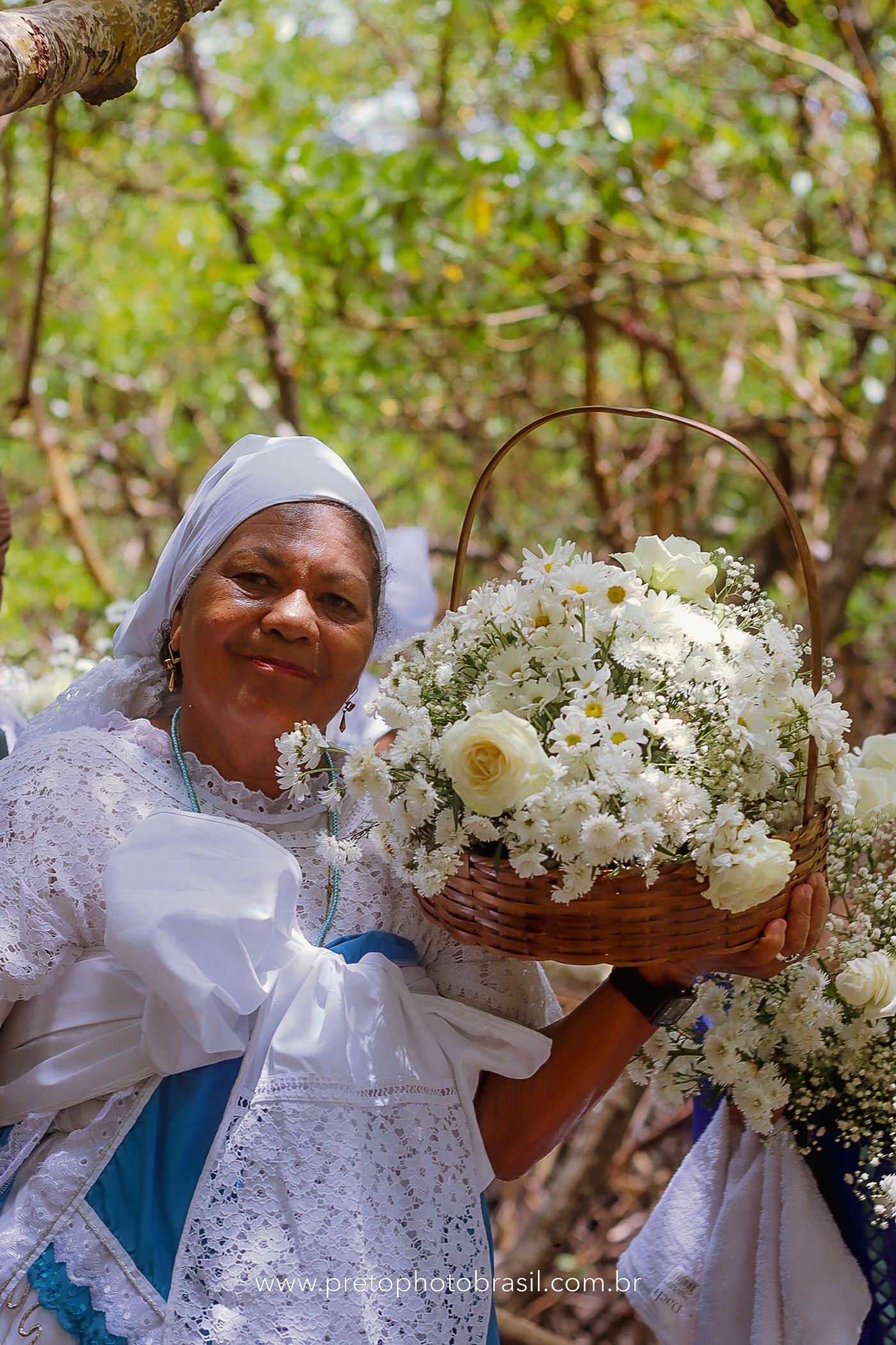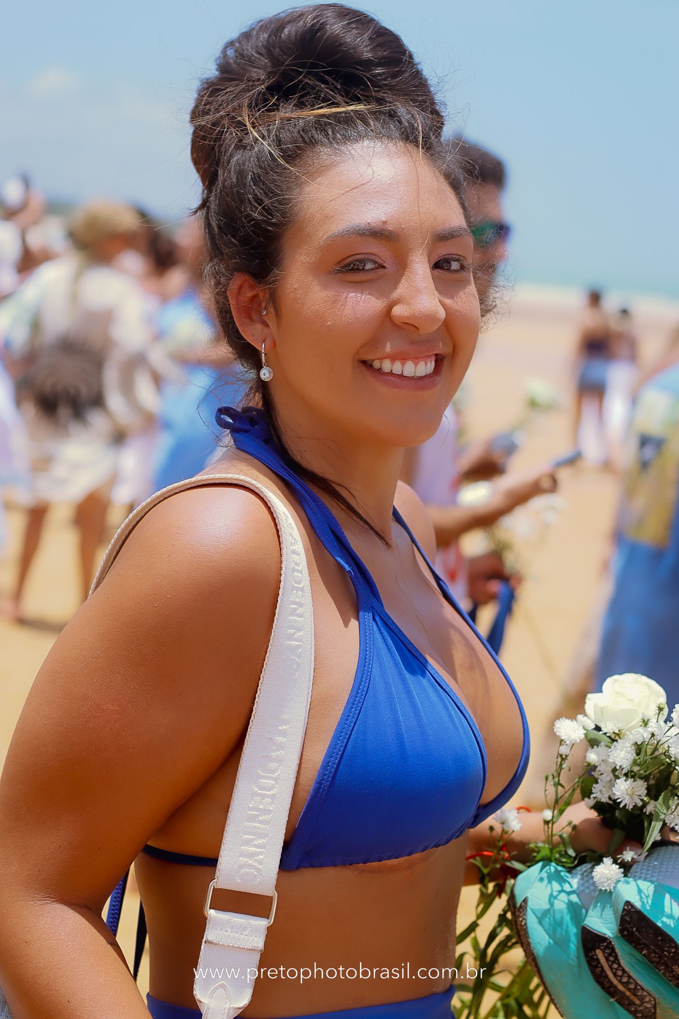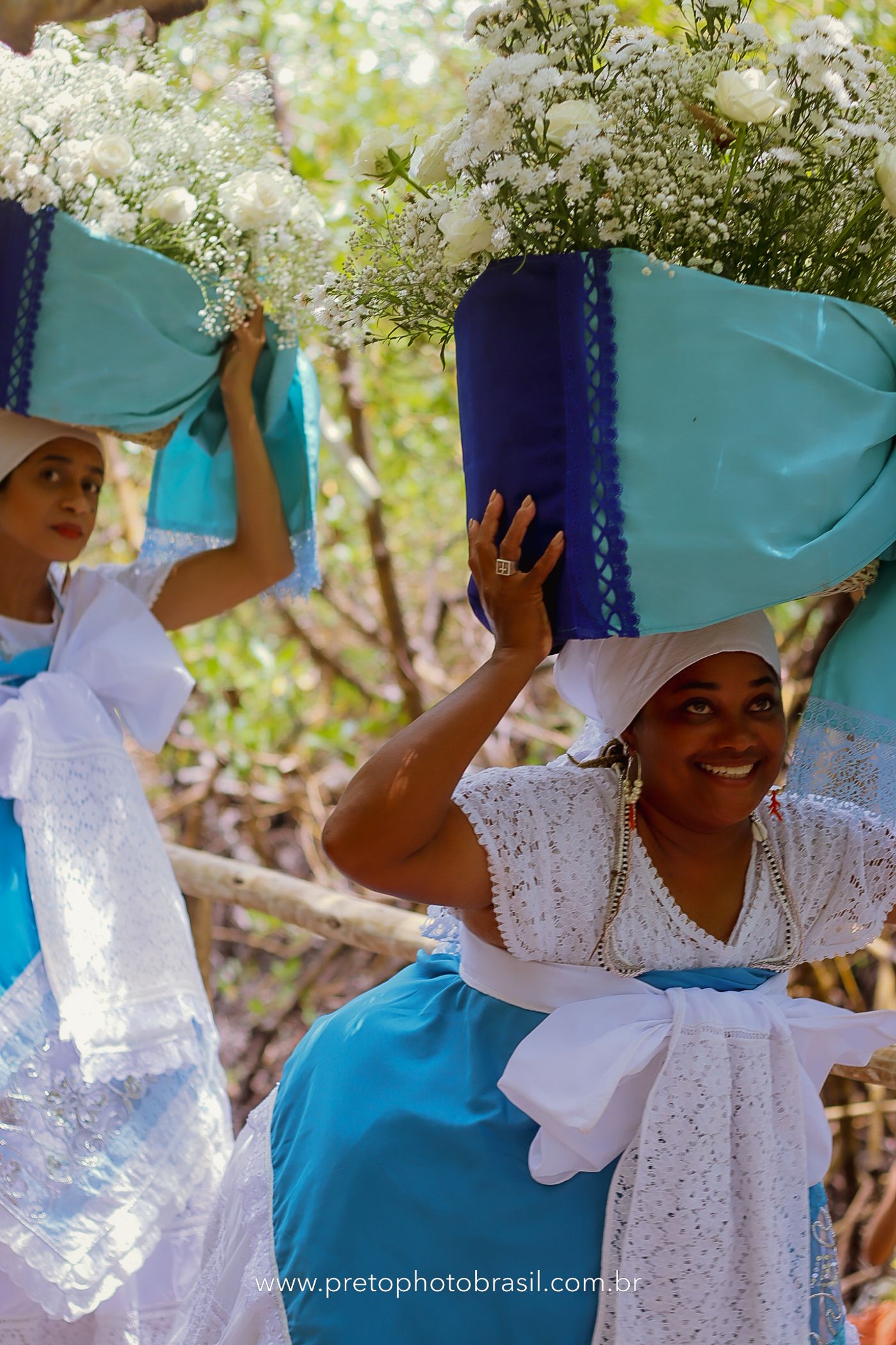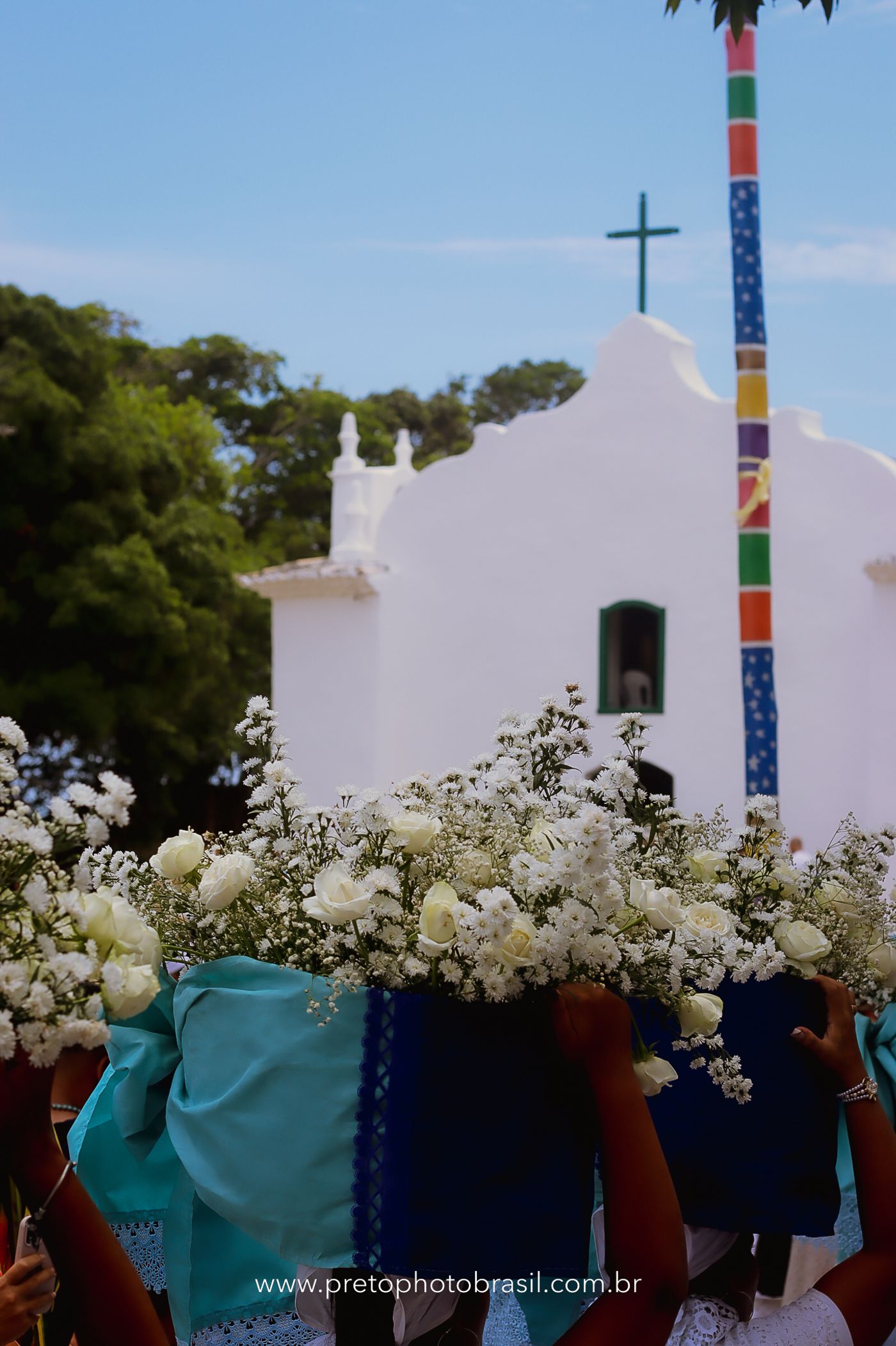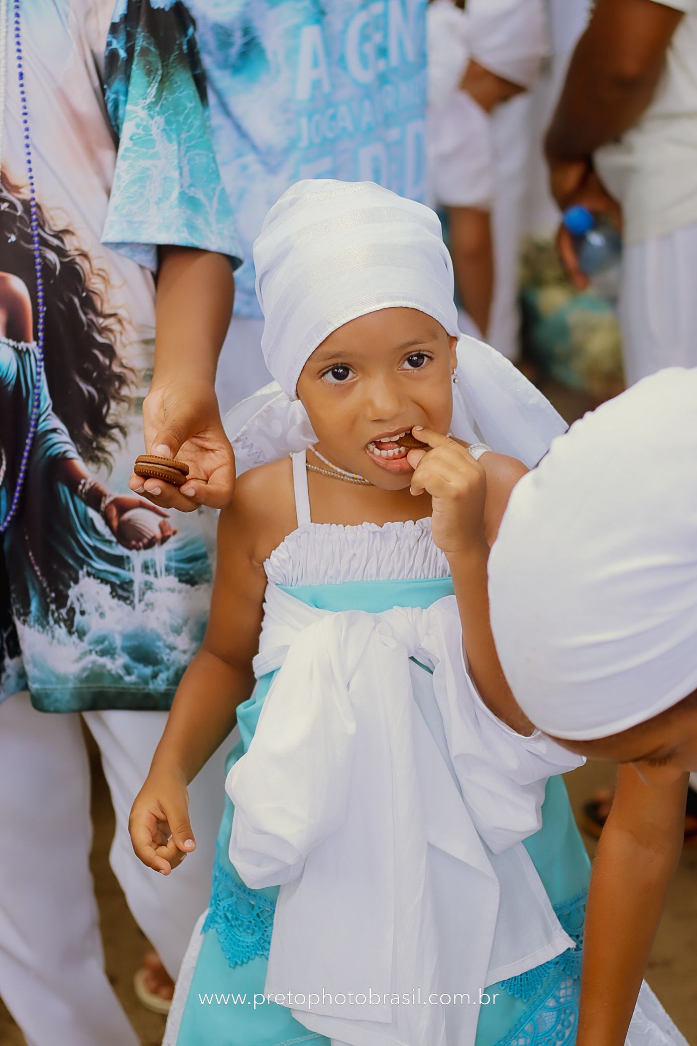 Descrição: Hoje, Trancoso foi tomada por um caminhar antigo e vivo. As baianas saíram em cortejo, com passos firmes e delicados, levando nos braços e sobre a cabeça cestos de flores brancas e azuis — oferendas de amor, fé e gratidão. O caminho até a praia não foi apenas físico: foi ritual. O terreiro do Pai Roni conduziu a celebração com respeito e força ancestral. Entre cantos, silêncios e sorrisos, a multidão se formou naturalmente — gente de todo canto, unida por um mesmo gesto de entrega. Havia muita gente, mas não havia pressa. Havia fé. Havia alegria. Na chegada ao mar, as flores encontraram o destino certo. Foram entregues às águas como quem devolve algo sagrado à origem. Iemanjá recebeu — no azul do céu, no branco das roupas, no brilho tranquilo dos olhos de quem participou. Foi um dia de corpo presente e espírito aberto. Uma festa que não se assiste: se atravessa. E eu tive a honra de registrar, em imagens, esse encontro entre tradição, devoção e vida pulsando junto.