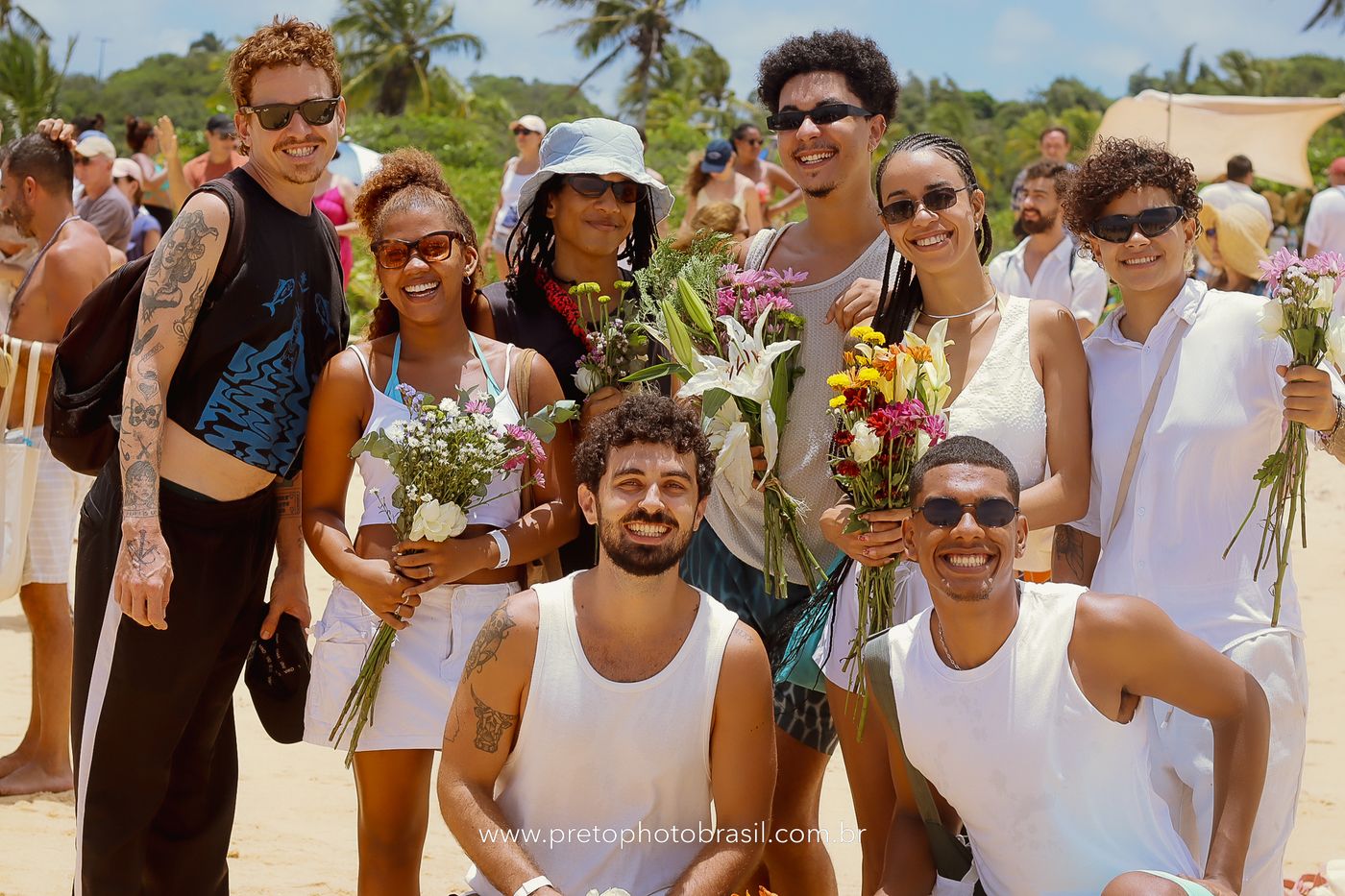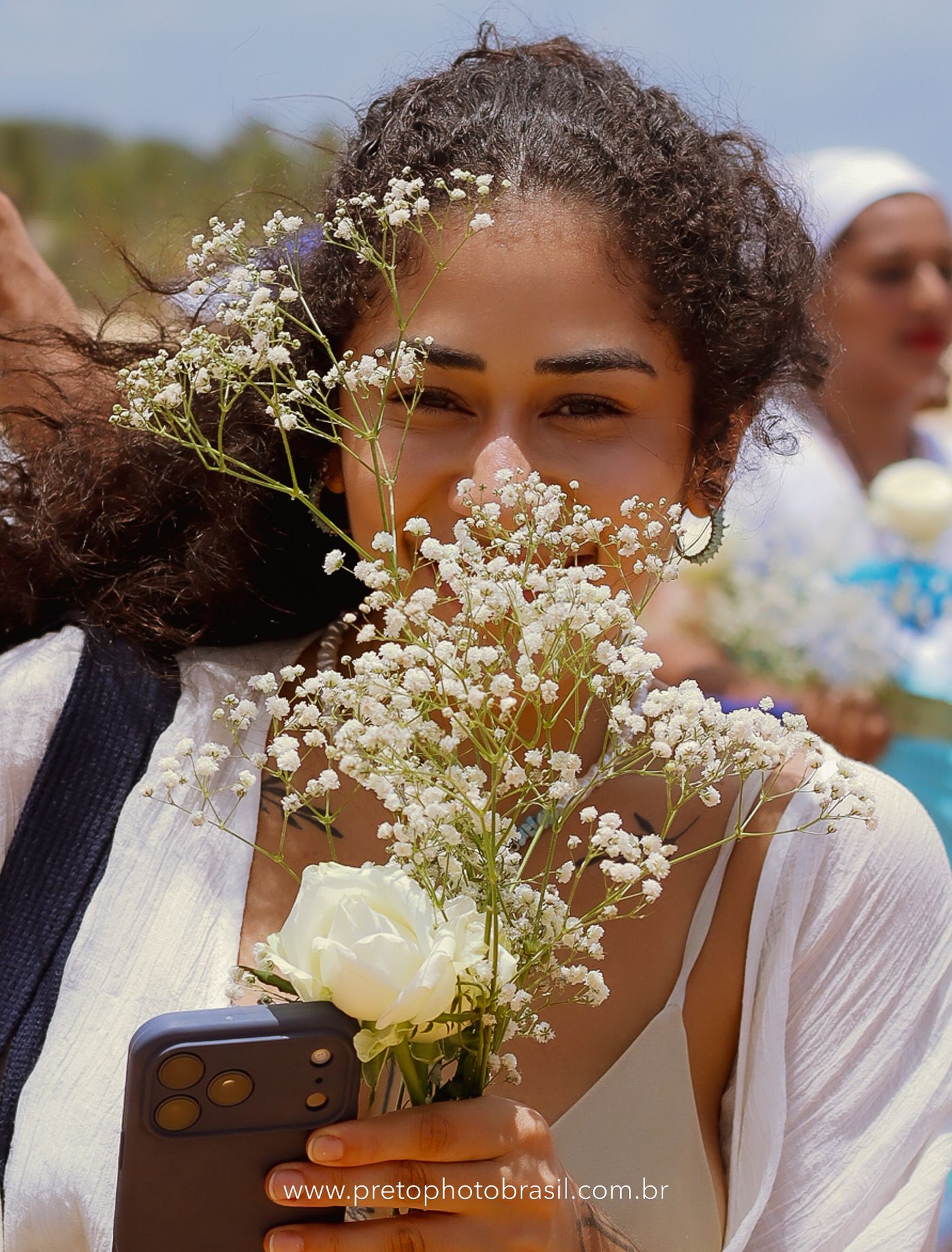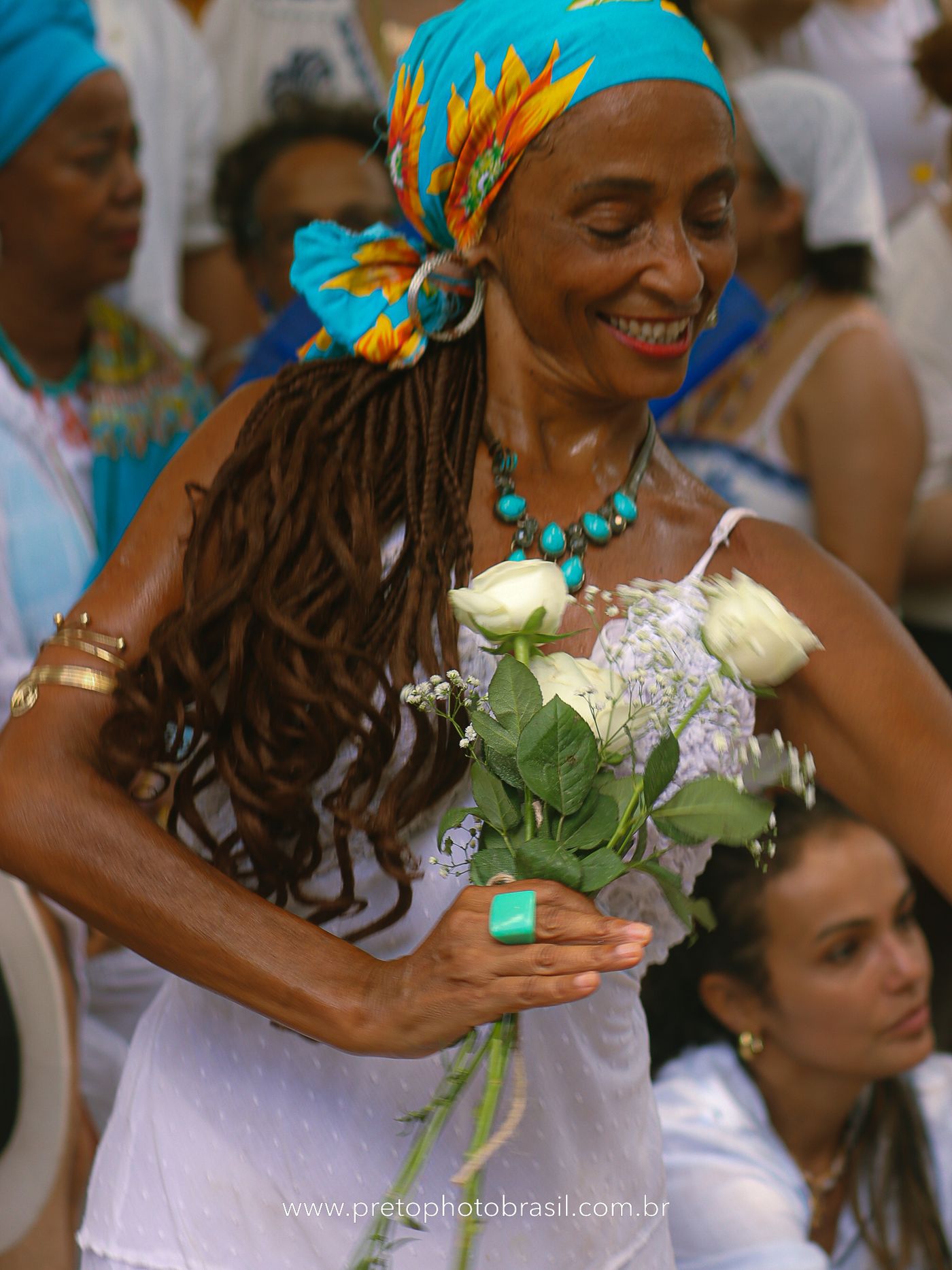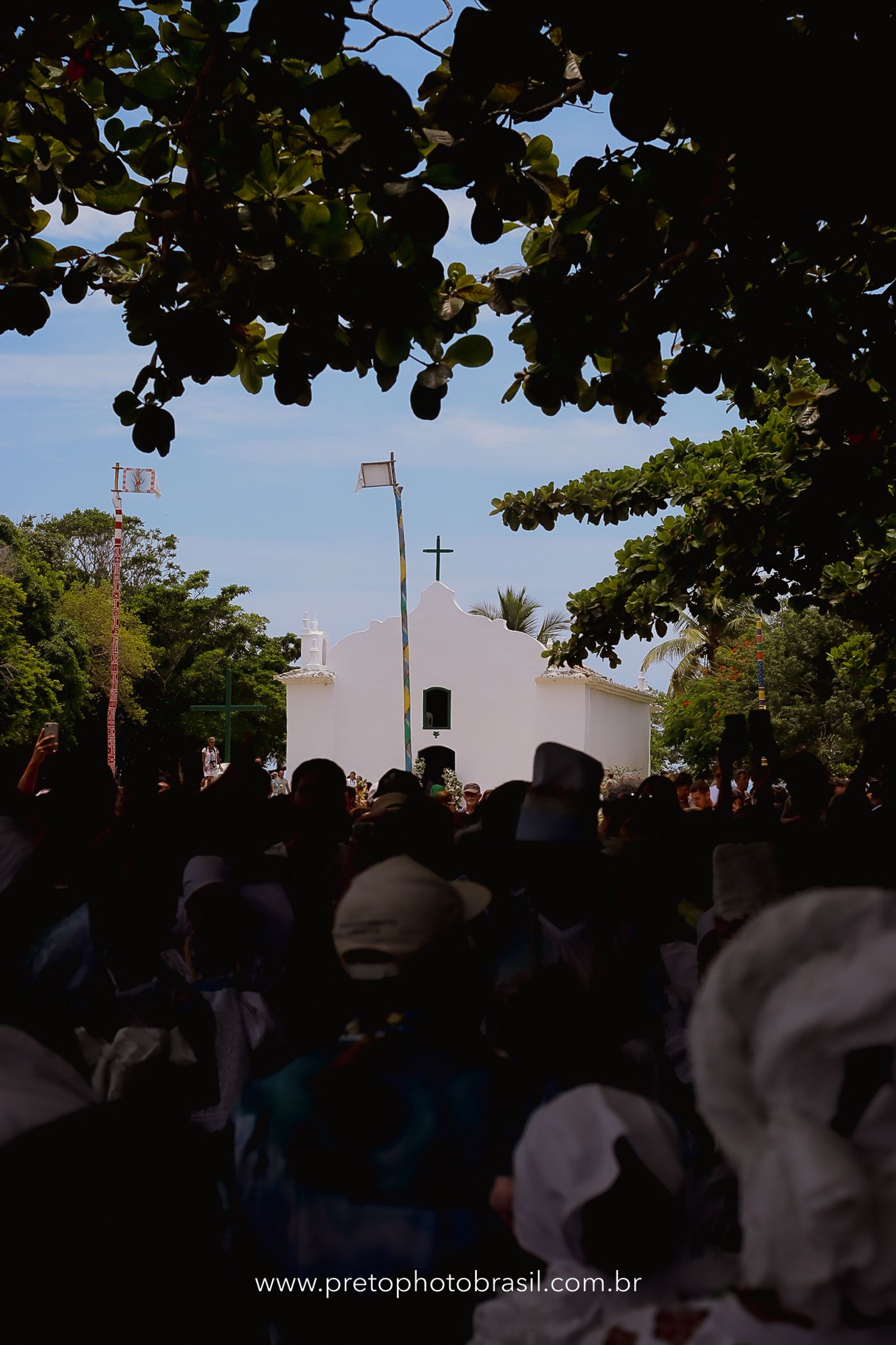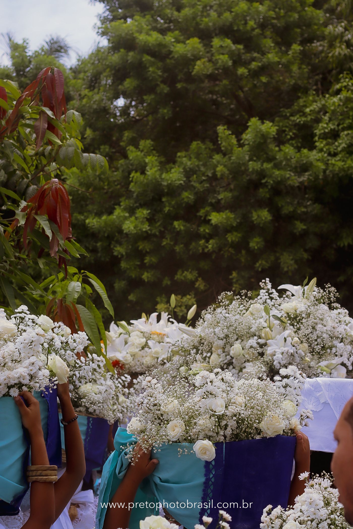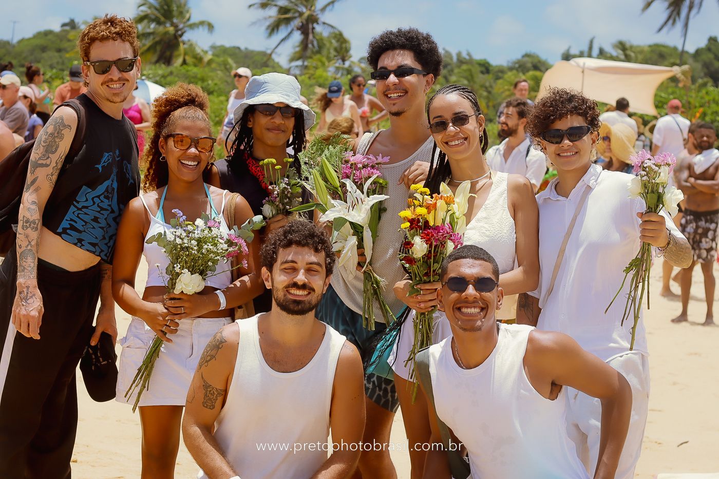 Descrição: Hoje, Trancoso foi tomada por um caminhar antigo e vivo. As baianas saíram em cortejo, com passos firmes e delicados, levando nos braços e sobre a cabeça cestos de flores brancas e azuis — oferendas de amor, fé e gratidão. O caminho até a praia não foi apenas físico: foi ritual. O terreiro do Pai Roni conduziu a celebração com respeito e força ancestral. Entre cantos, silêncios e sorrisos, a multidão se formou naturalmente — gente de todo canto, unida por um mesmo gesto de entrega. Havia muita gente, mas não havia pressa. Havia fé. Havia alegria. Na chegada ao mar, as flores encontraram o destino certo. Foram entregues às águas como quem devolve algo sagrado à origem. Iemanjá recebeu — no azul do céu, no branco das roupas, no brilho tranquilo dos olhos de quem participou. Foi um dia de corpo presente e espírito aberto. Uma festa que não se assiste: se atravessa. E eu tive a honra de registrar, em imagens, esse encontro entre tradição, devoção e vida pulsando junto.