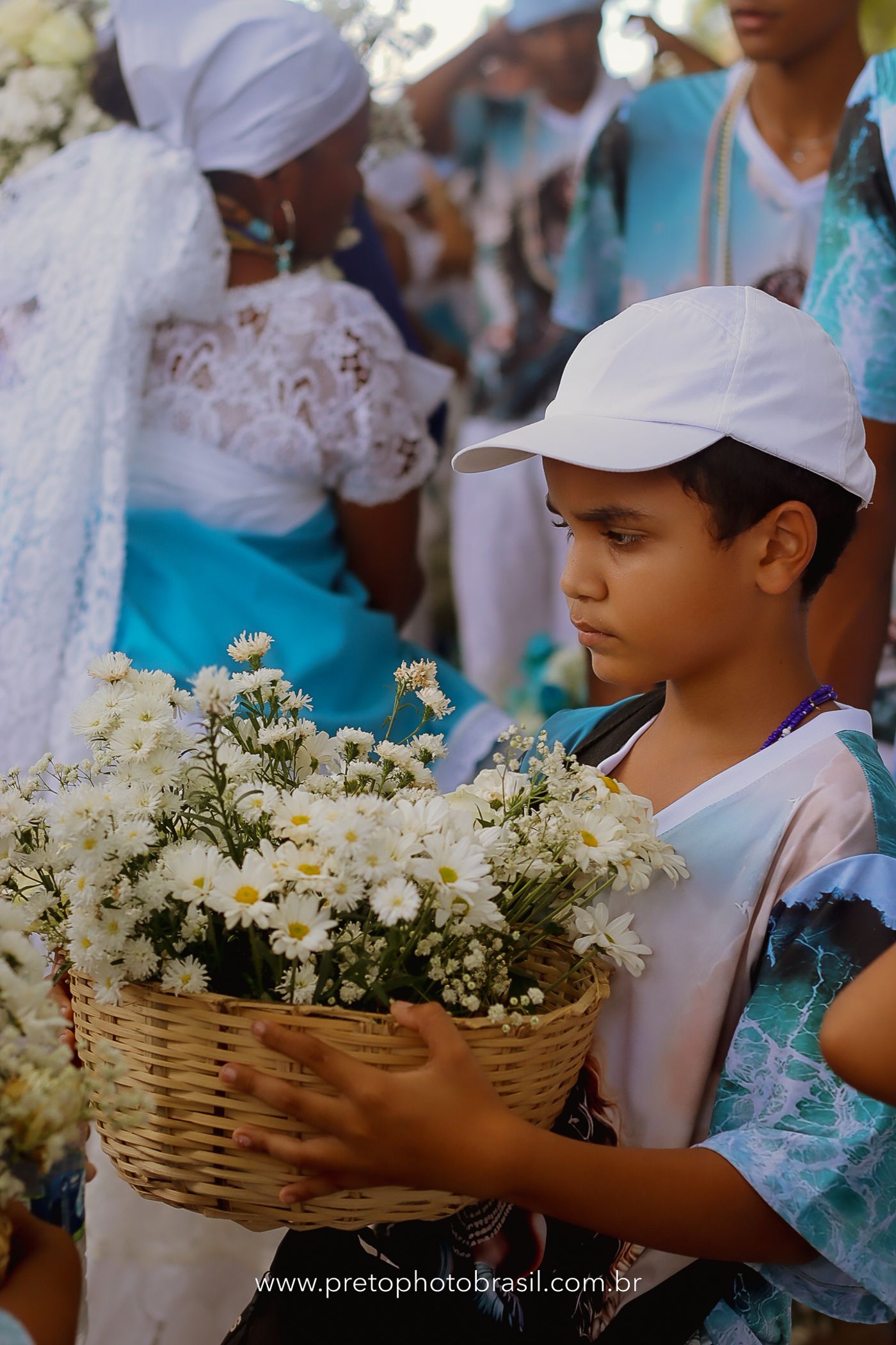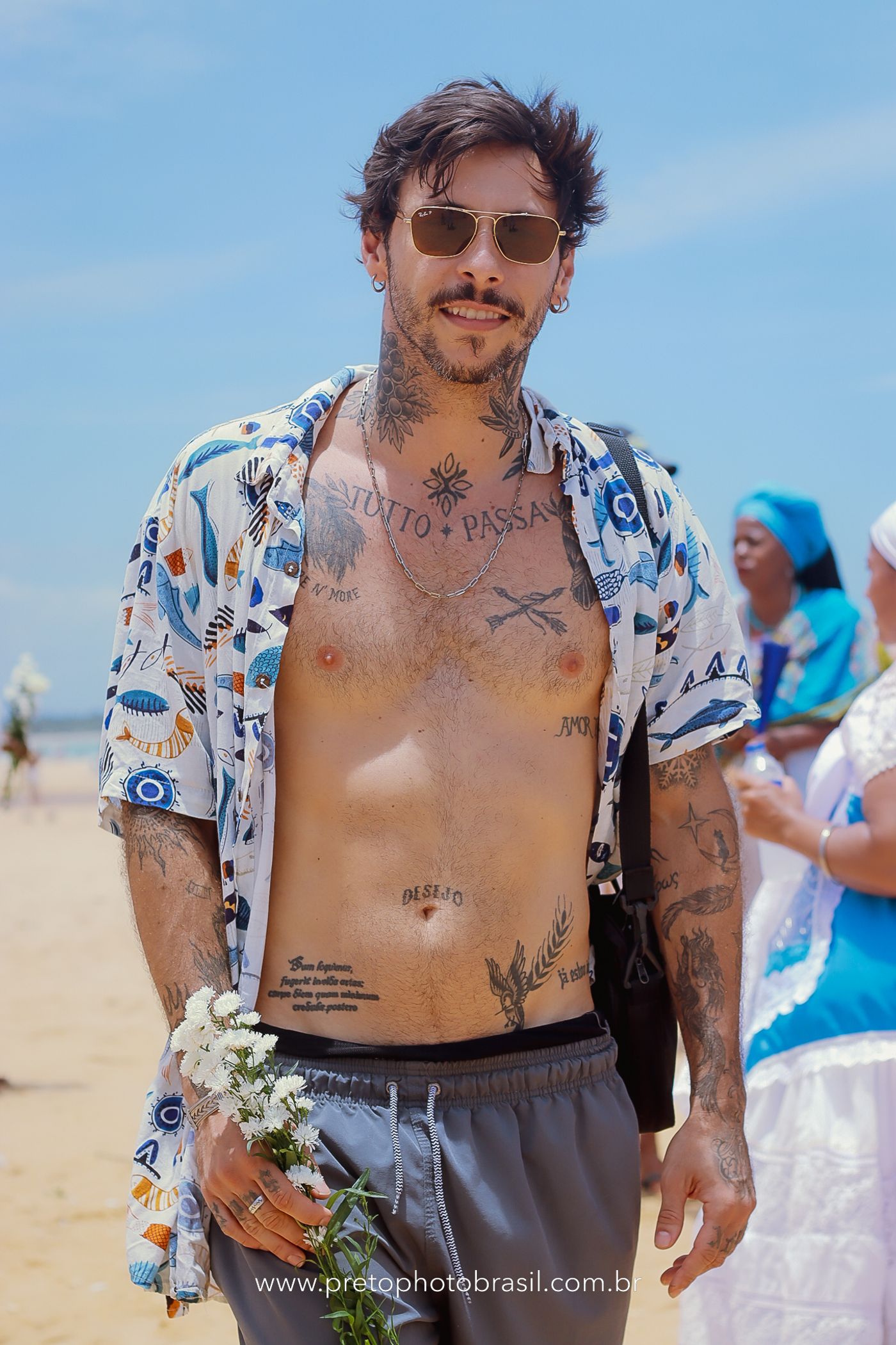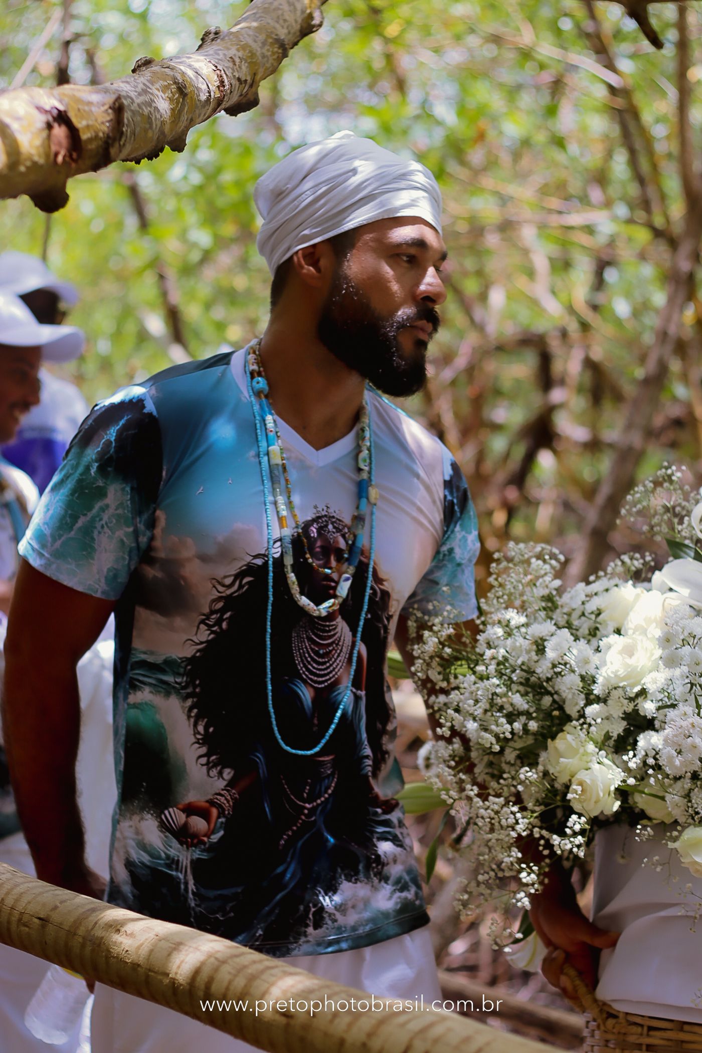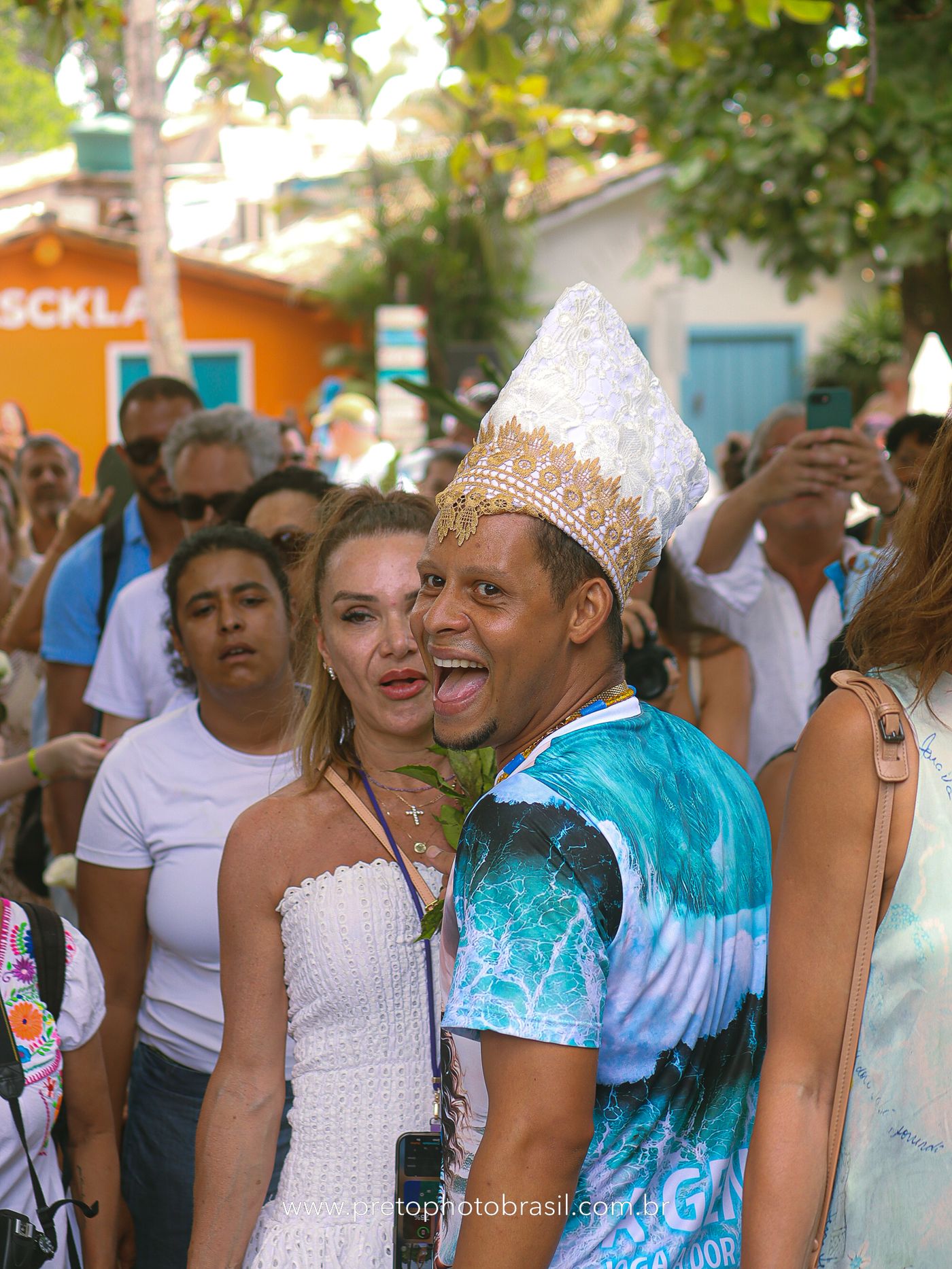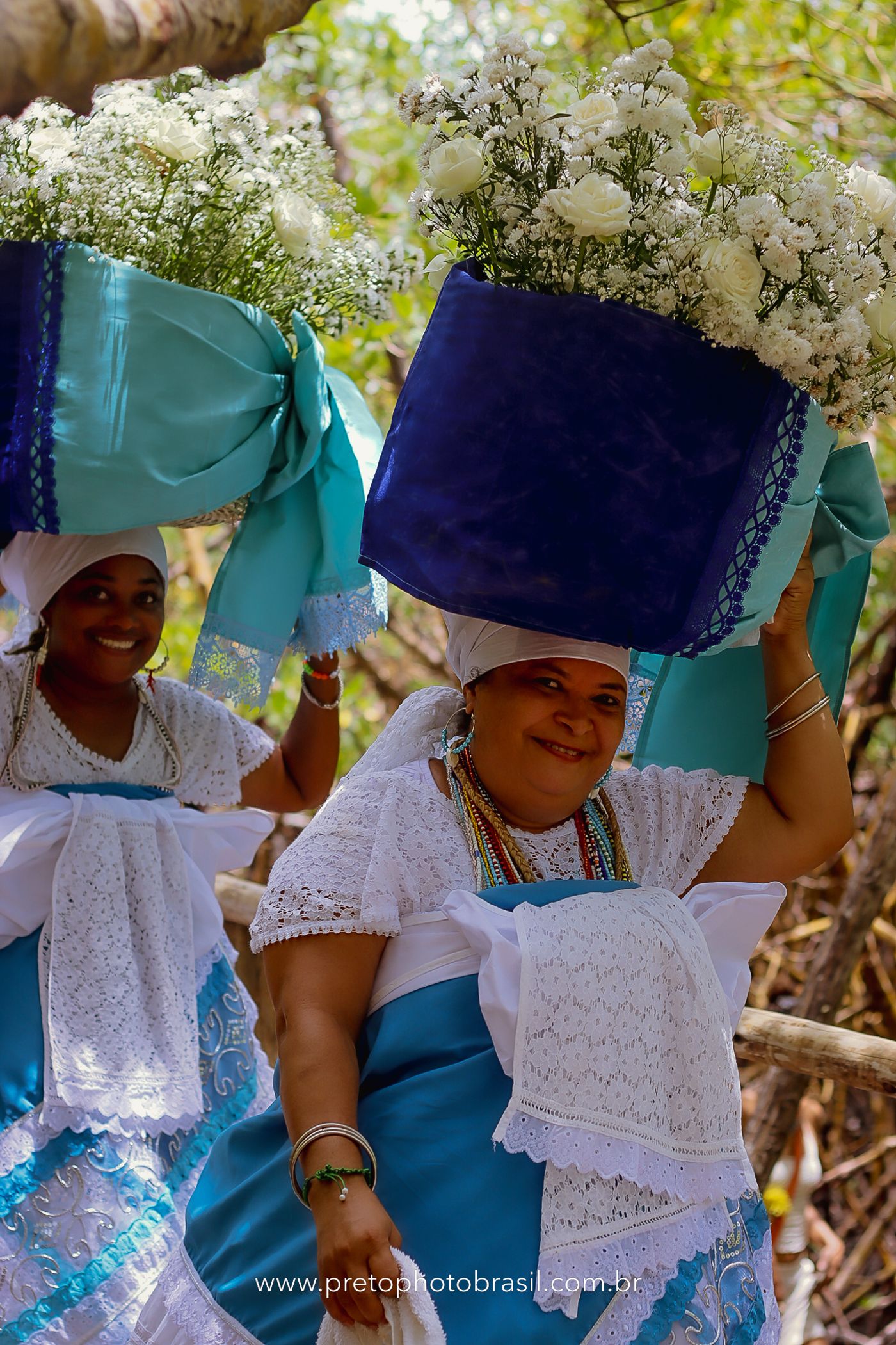 Descrição: Hoje, Trancoso foi tomada por um caminhar antigo e vivo. As baianas saíram em cortejo, com passos firmes e delicados, levando nos braços e sobre a cabeça cestos de flores brancas e azuis — oferendas de amor, fé e gratidão. O caminho até a praia não foi apenas físico: foi ritual. O terreiro do Pai Roni conduziu a celebração com respeito e força ancestral. Entre cantos, silêncios e sorrisos, a multidão se formou naturalmente — gente de todo canto, unida por um mesmo gesto de entrega. Havia muita gente, mas não havia pressa. Havia fé. Havia alegria. Na chegada ao mar, as flores encontraram o destino certo. Foram entregues às águas como quem devolve algo sagrado à origem. Iemanjá recebeu — no azul do céu, no branco das roupas, no brilho tranquilo dos olhos de quem participou. Foi um dia de corpo presente e espírito aberto. Uma festa que não se assiste: se atravessa. E eu tive a honra de registrar, em imagens, esse encontro entre tradição, devoção e vida pulsando junto.