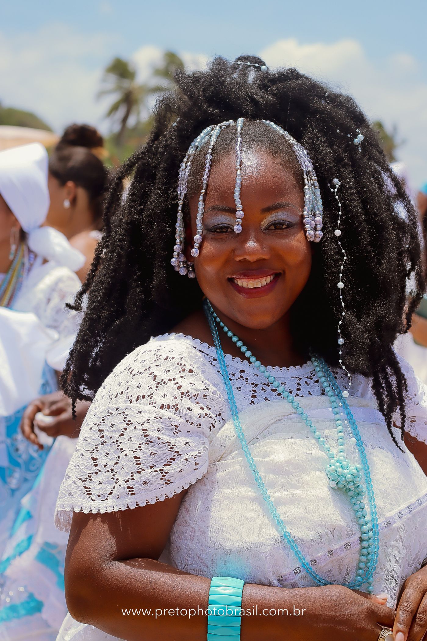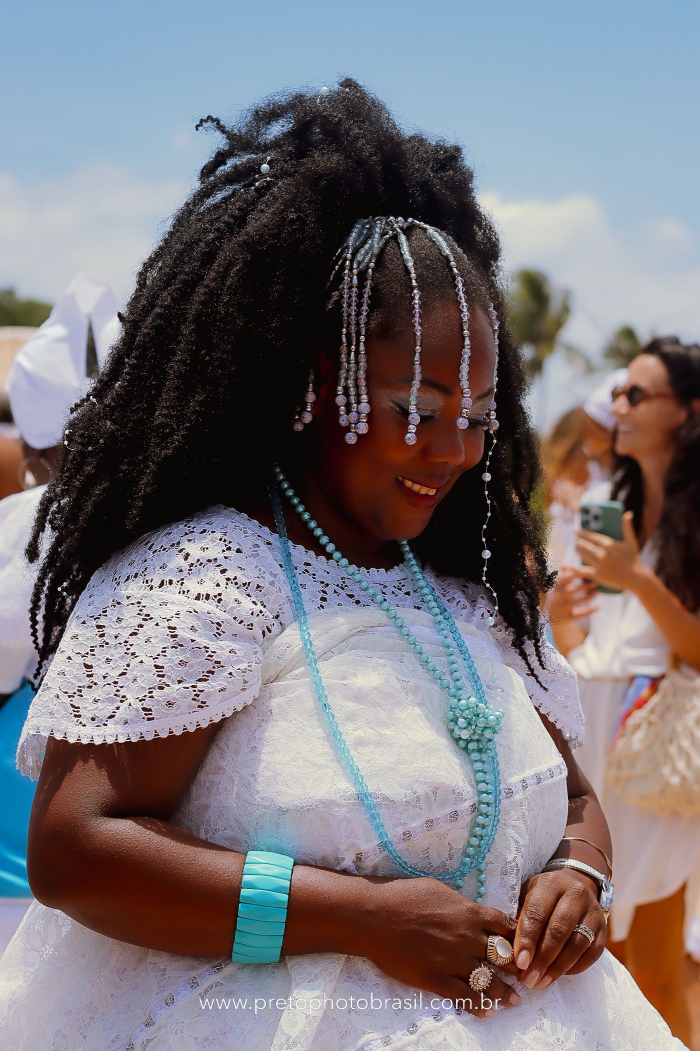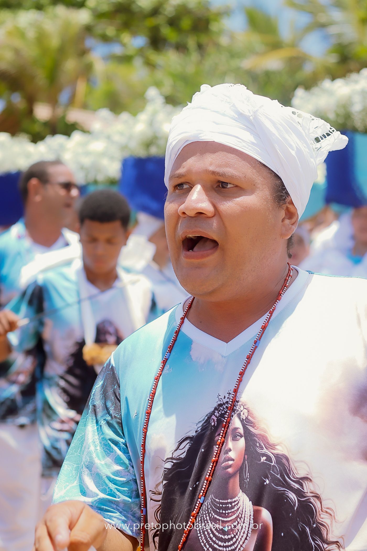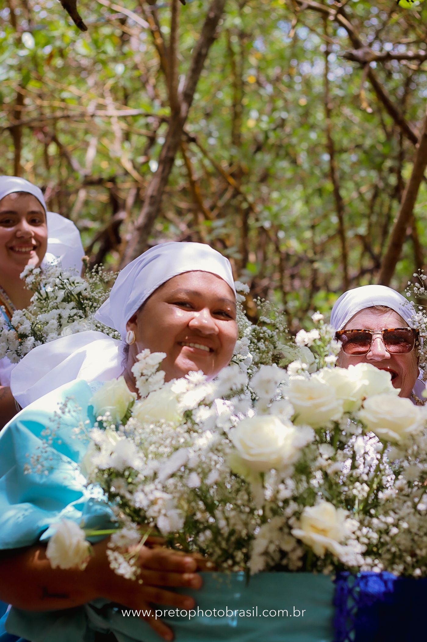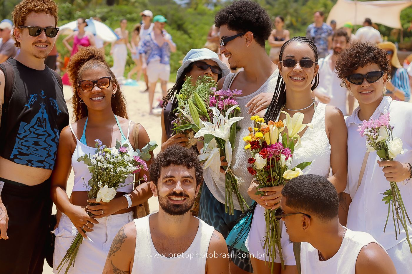 Descrição: Hoje, Trancoso foi tomada por um caminhar antigo e vivo. As baianas saíram em cortejo, com passos firmes e delicados, levando nos braços e sobre a cabeça cestos de flores brancas e azuis — oferendas de amor, fé e gratidão. O caminho até a praia não foi apenas físico: foi ritual. O terreiro do Pai Roni conduziu a celebração com respeito e força ancestral. Entre cantos, silêncios e sorrisos, a multidão se formou naturalmente — gente de todo canto, unida por um mesmo gesto de entrega. Havia muita gente, mas não havia pressa. Havia fé. Havia alegria. Na chegada ao mar, as flores encontraram o destino certo. Foram entregues às águas como quem devolve algo sagrado à origem. Iemanjá recebeu — no azul do céu, no branco das roupas, no brilho tranquilo dos olhos de quem participou. Foi um dia de corpo presente e espírito aberto. Uma festa que não se assiste: se atravessa. E eu tive a honra de registrar, em imagens, esse encontro entre tradição, devoção e vida pulsando junto.