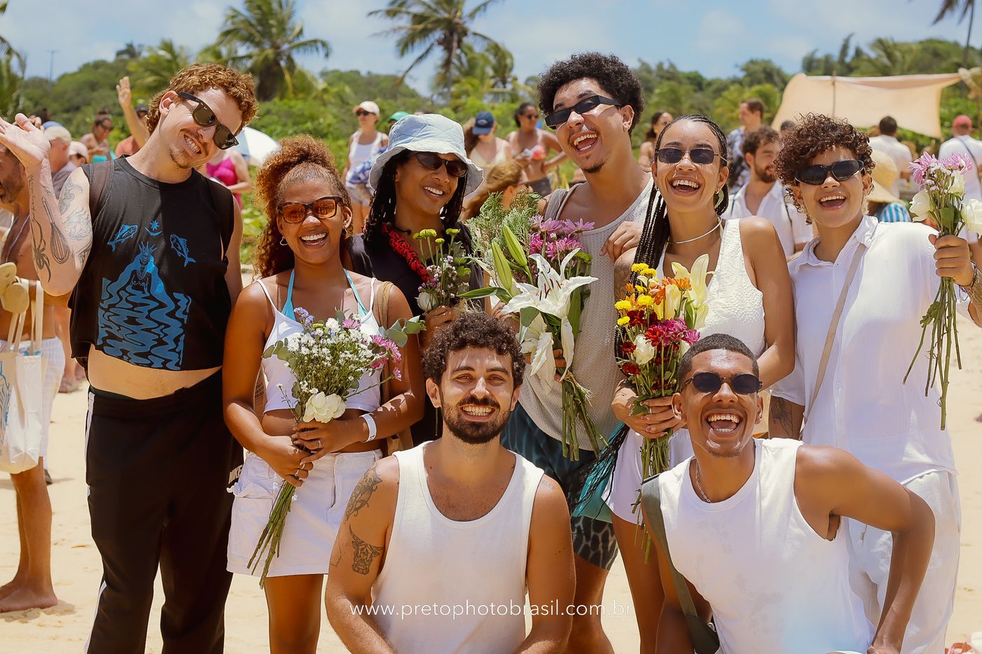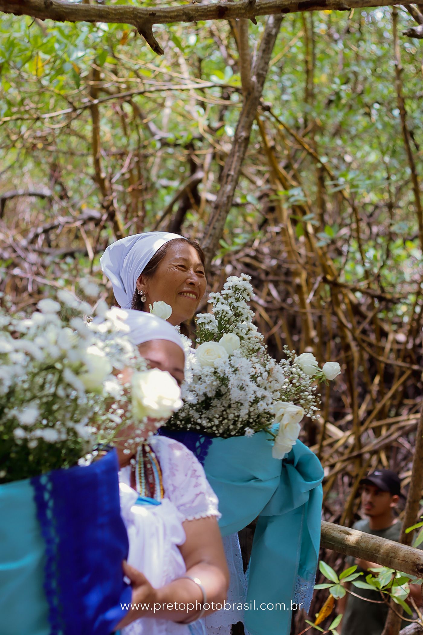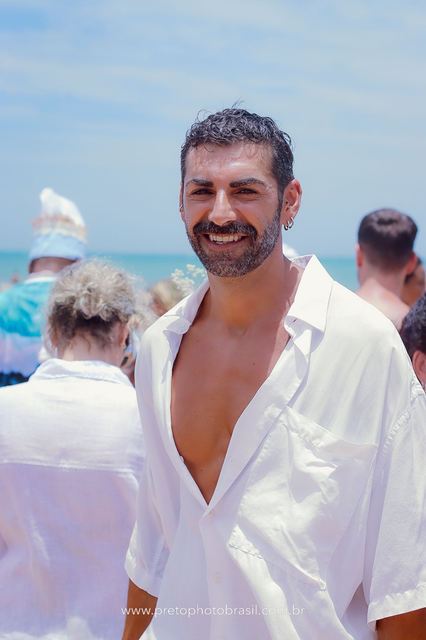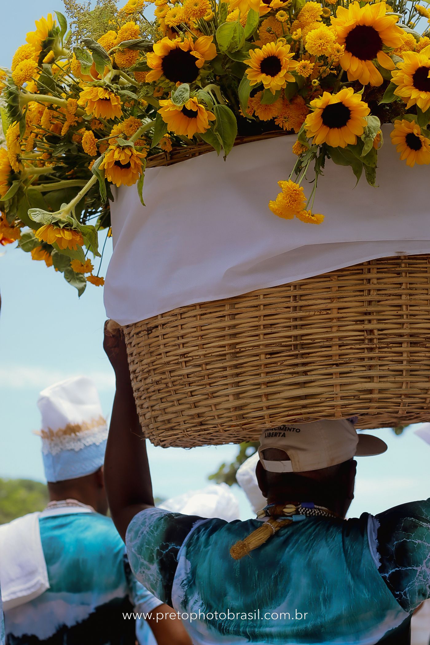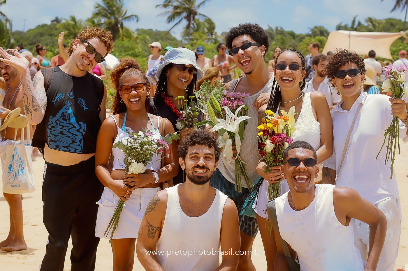 Descrição: Hoje, Trancoso foi tomada por um caminhar antigo e vivo. As baianas saíram em cortejo, com passos firmes e delicados, levando nos braços e sobre a cabeça cestos de flores brancas e azuis — oferendas de amor, fé e gratidão. O caminho até a praia não foi apenas físico: foi ritual. O terreiro do Pai Roni conduziu a celebração com respeito e força ancestral. Entre cantos, silêncios e sorrisos, a multidão se formou naturalmente — gente de todo canto, unida por um mesmo gesto de entrega. Havia muita gente, mas não havia pressa. Havia fé. Havia alegria. Na chegada ao mar, as flores encontraram o destino certo. Foram entregues às águas como quem devolve algo sagrado à origem. Iemanjá recebeu — no azul do céu, no branco das roupas, no brilho tranquilo dos olhos de quem participou. Foi um dia de corpo presente e espírito aberto. Uma festa que não se assiste: se atravessa. E eu tive a honra de registrar, em imagens, esse encontro entre tradição, devoção e vida pulsando junto.