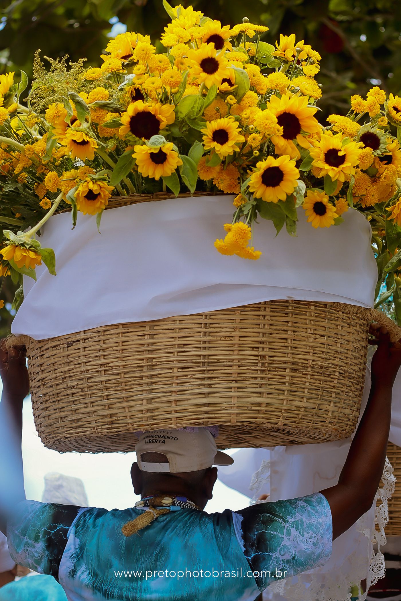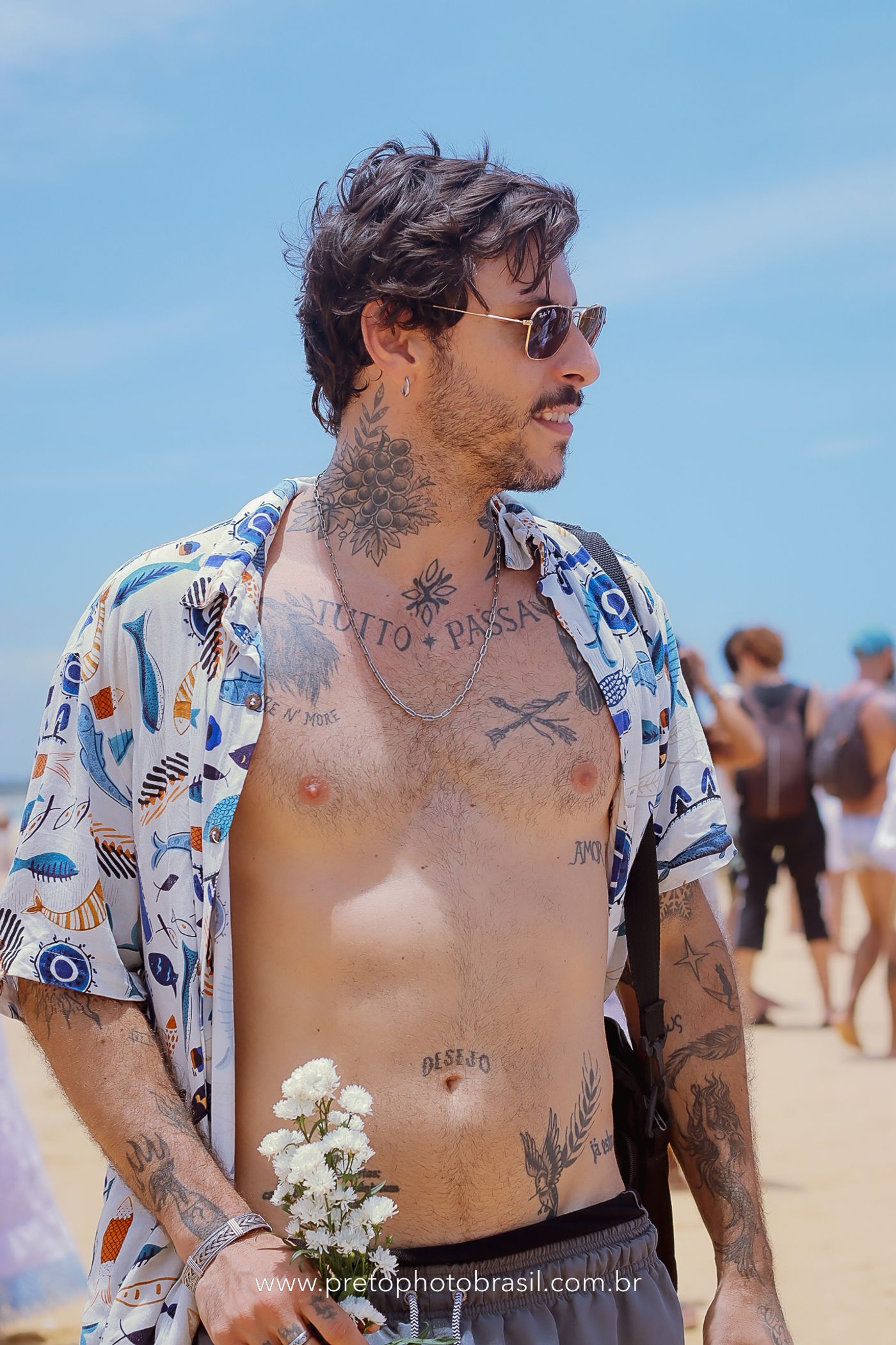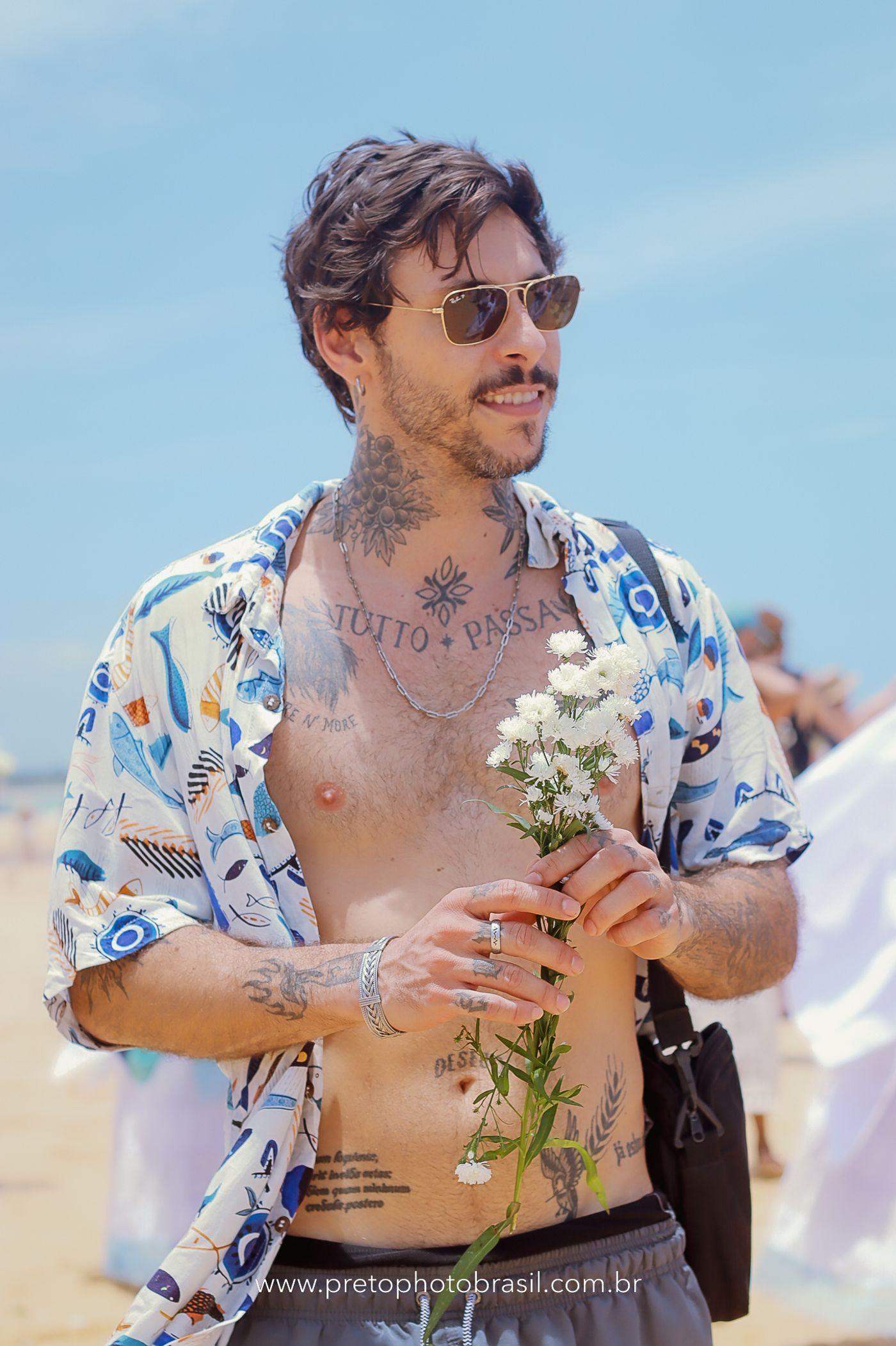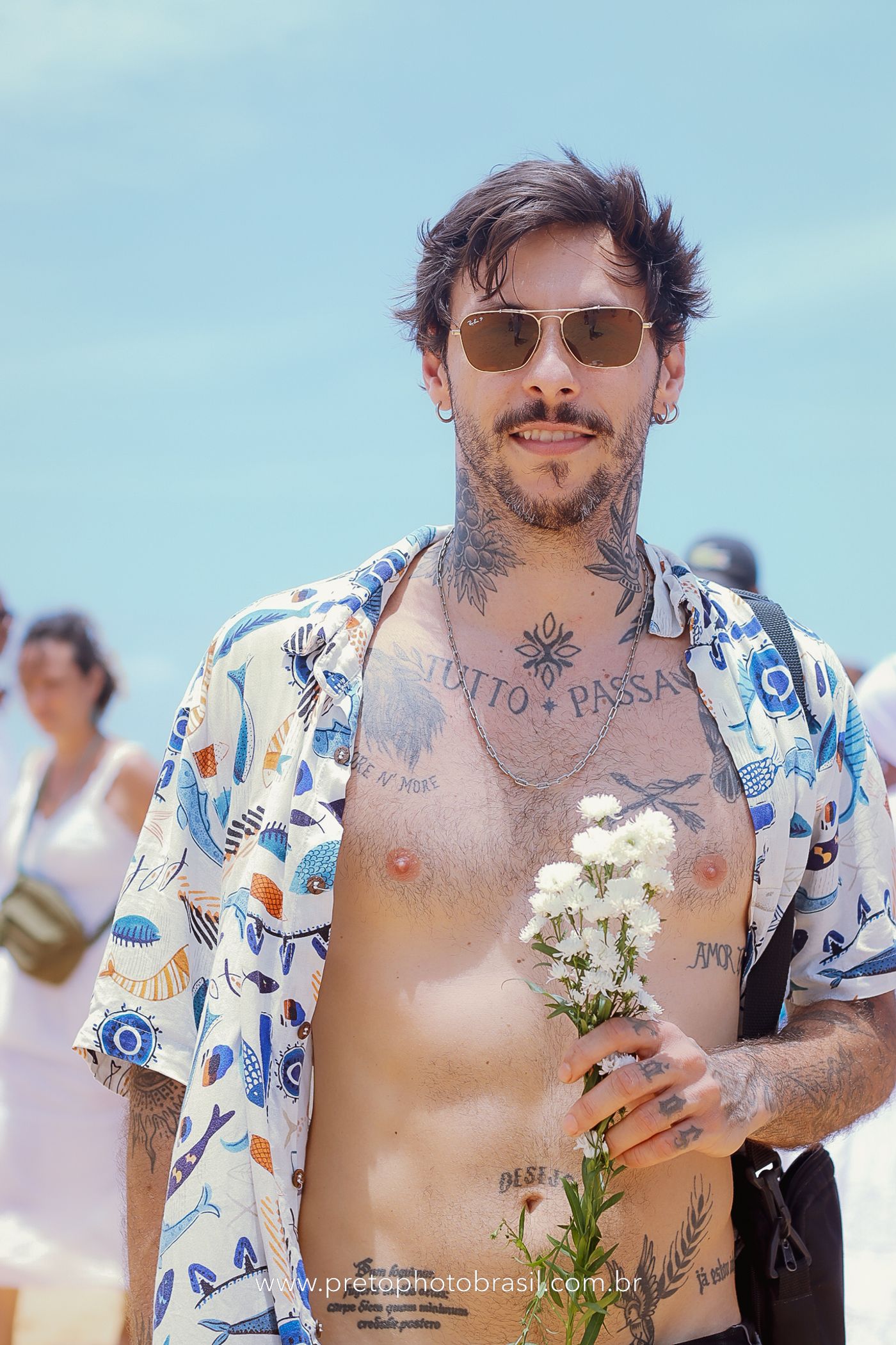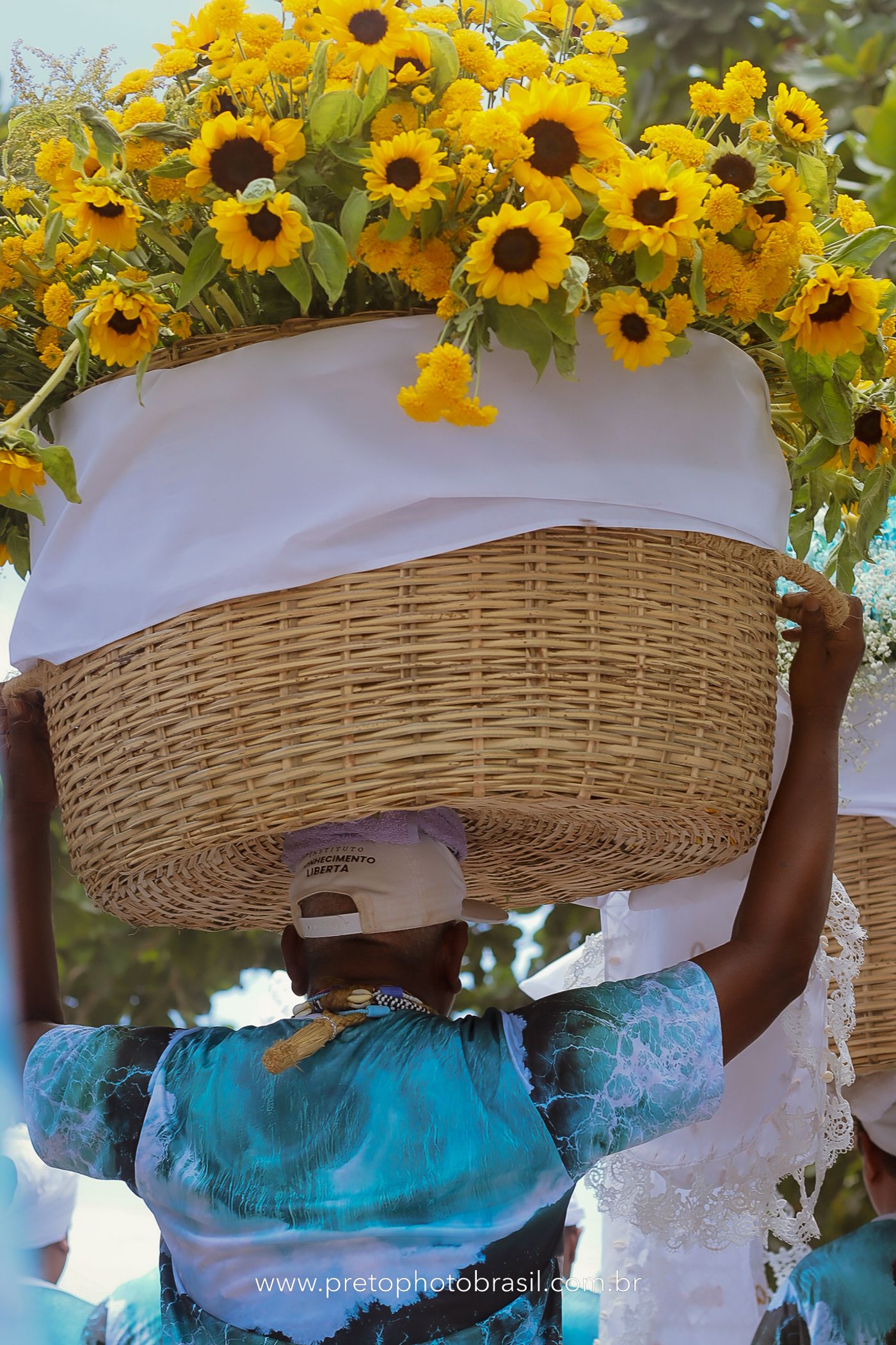 Descrição: Hoje, Trancoso foi tomada por um caminhar antigo e vivo. As baianas saíram em cortejo, com passos firmes e delicados, levando nos braços e sobre a cabeça cestos de flores brancas e azuis — oferendas de amor, fé e gratidão. O caminho até a praia não foi apenas físico: foi ritual. O terreiro do Pai Roni conduziu a celebração com respeito e força ancestral. Entre cantos, silêncios e sorrisos, a multidão se formou naturalmente — gente de todo canto, unida por um mesmo gesto de entrega. Havia muita gente, mas não havia pressa. Havia fé. Havia alegria. Na chegada ao mar, as flores encontraram o destino certo. Foram entregues às águas como quem devolve algo sagrado à origem. Iemanjá recebeu — no azul do céu, no branco das roupas, no brilho tranquilo dos olhos de quem participou. Foi um dia de corpo presente e espírito aberto. Uma festa que não se assiste: se atravessa. E eu tive a honra de registrar, em imagens, esse encontro entre tradição, devoção e vida pulsando junto.