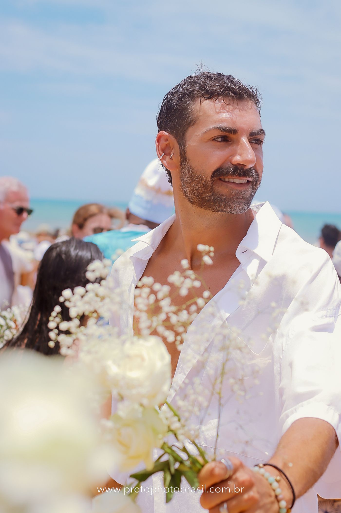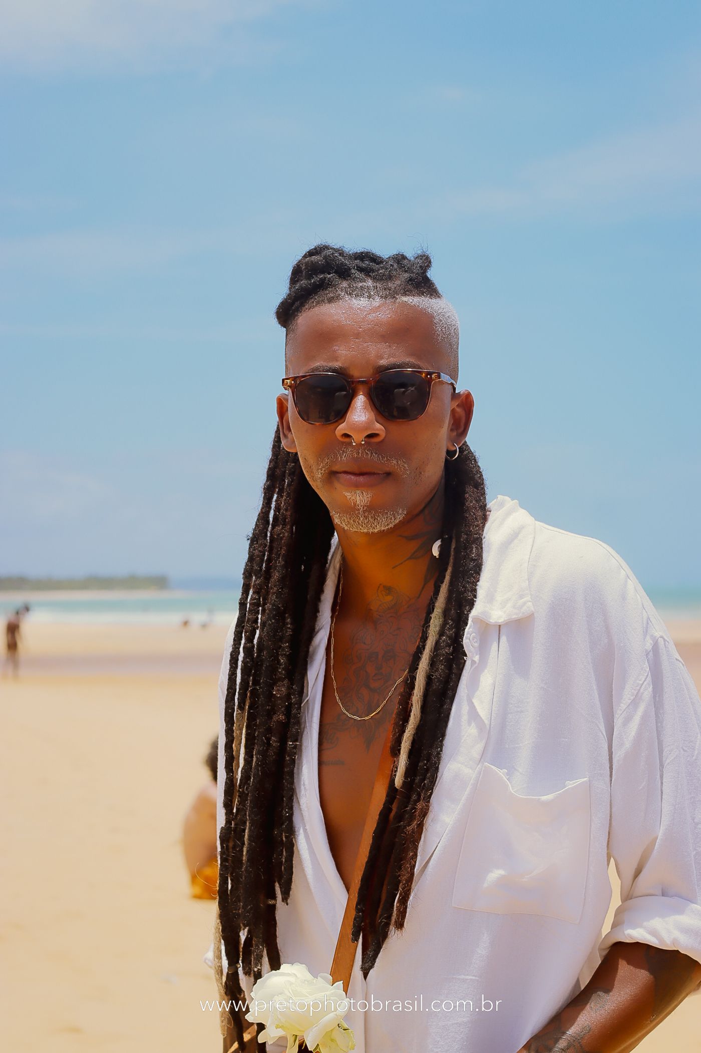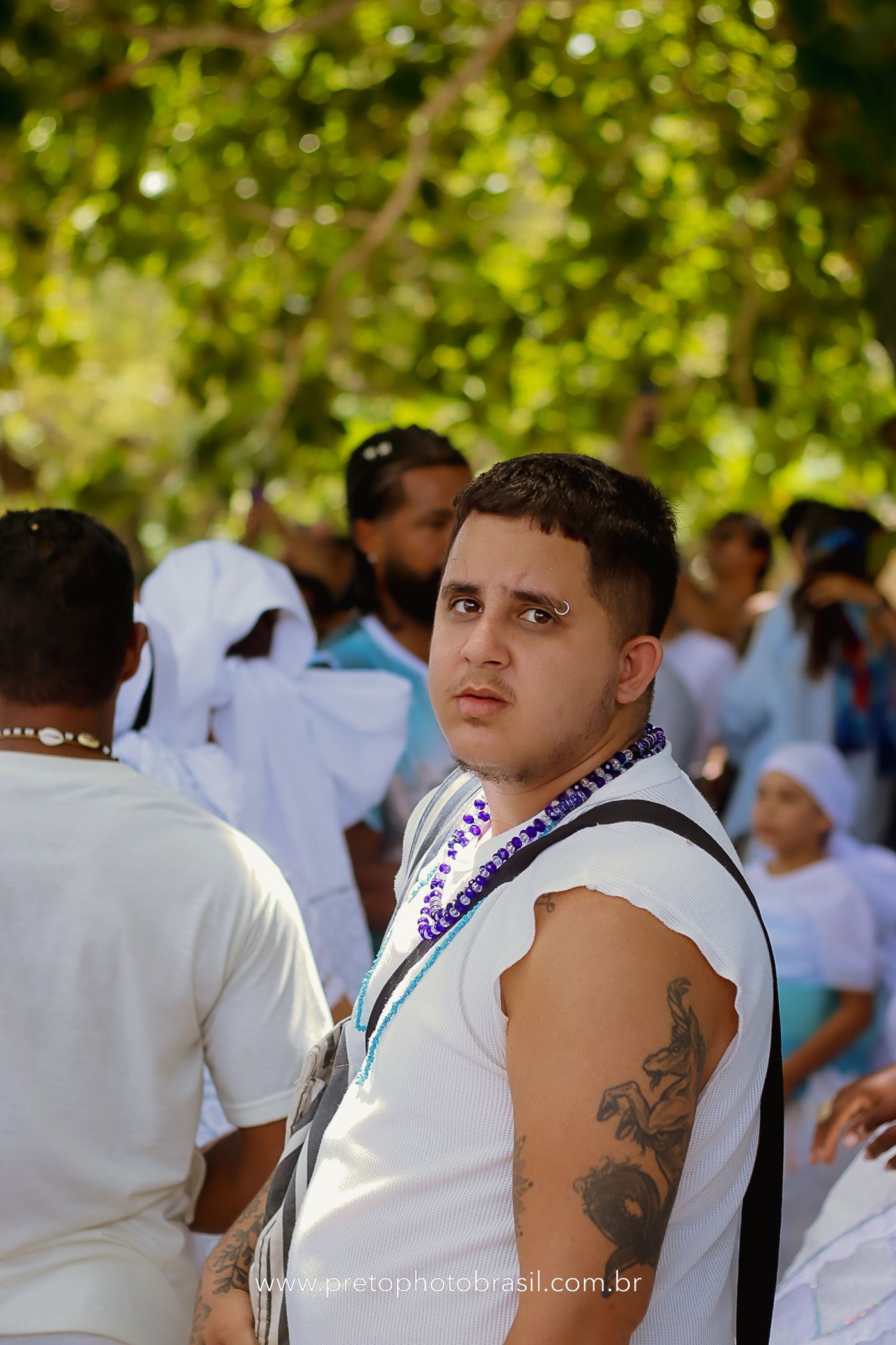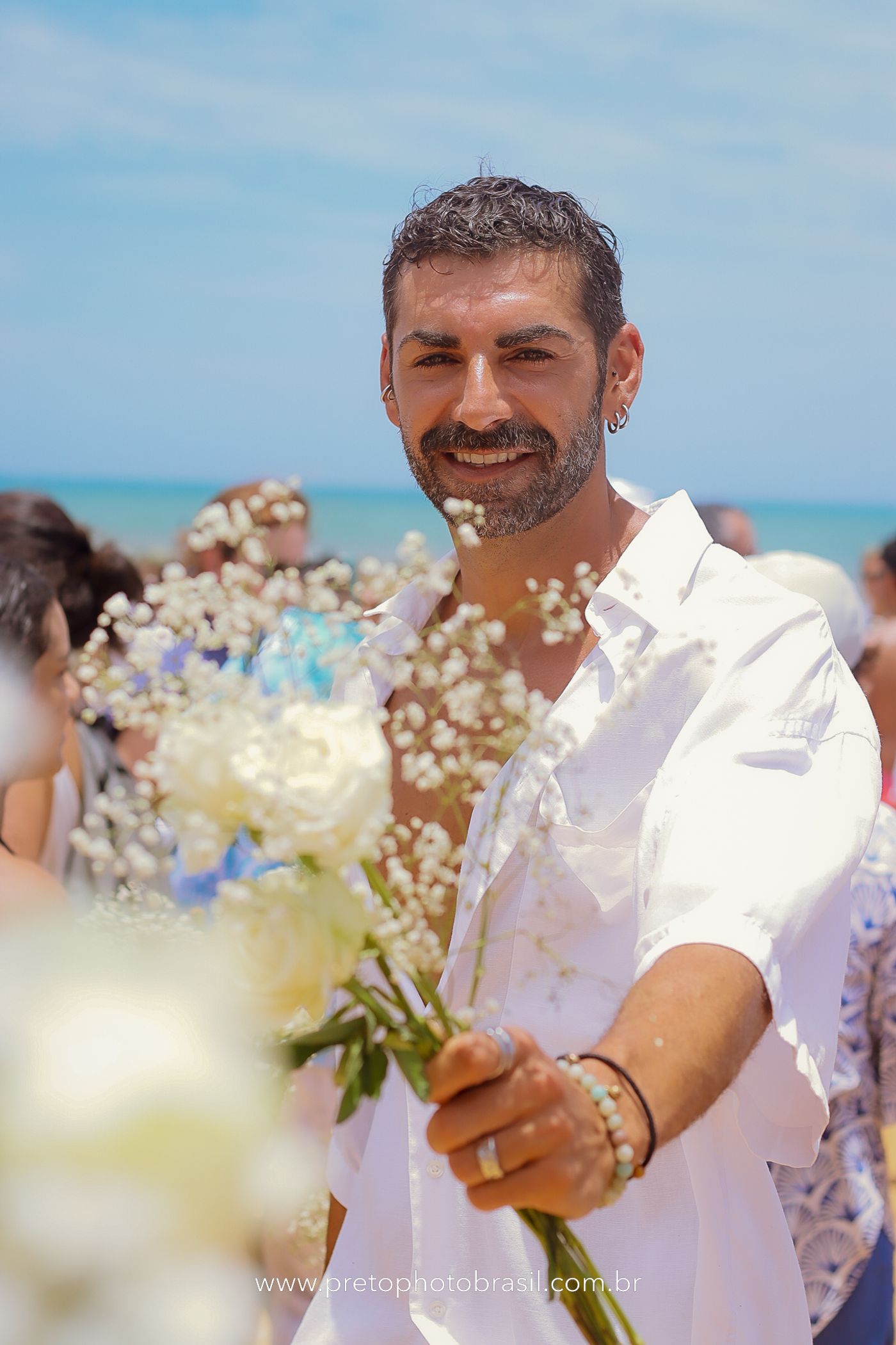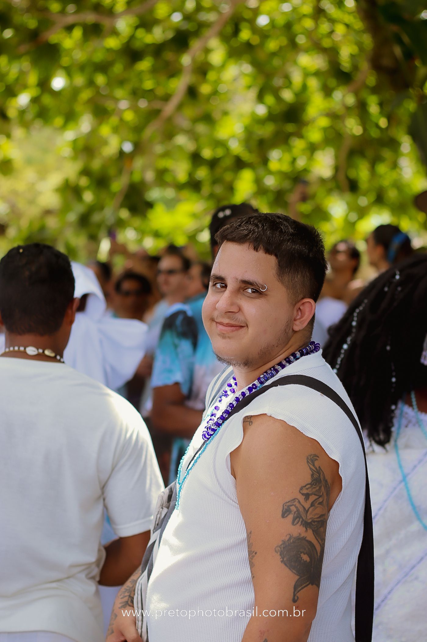 Descrição: Hoje, Trancoso foi tomada por um caminhar antigo e vivo. As baianas saíram em cortejo, com passos firmes e delicados, levando nos braços e sobre a cabeça cestos de flores brancas e azuis — oferendas de amor, fé e gratidão. O caminho até a praia não foi apenas físico: foi ritual. O terreiro do Pai Roni conduziu a celebração com respeito e força ancestral. Entre cantos, silêncios e sorrisos, a multidão se formou naturalmente — gente de todo canto, unida por um mesmo gesto de entrega. Havia muita gente, mas não havia pressa. Havia fé. Havia alegria. Na chegada ao mar, as flores encontraram o destino certo. Foram entregues às águas como quem devolve algo sagrado à origem. Iemanjá recebeu — no azul do céu, no branco das roupas, no brilho tranquilo dos olhos de quem participou. Foi um dia de corpo presente e espírito aberto. Uma festa que não se assiste: se atravessa. E eu tive a honra de registrar, em imagens, esse encontro entre tradição, devoção e vida pulsando junto.